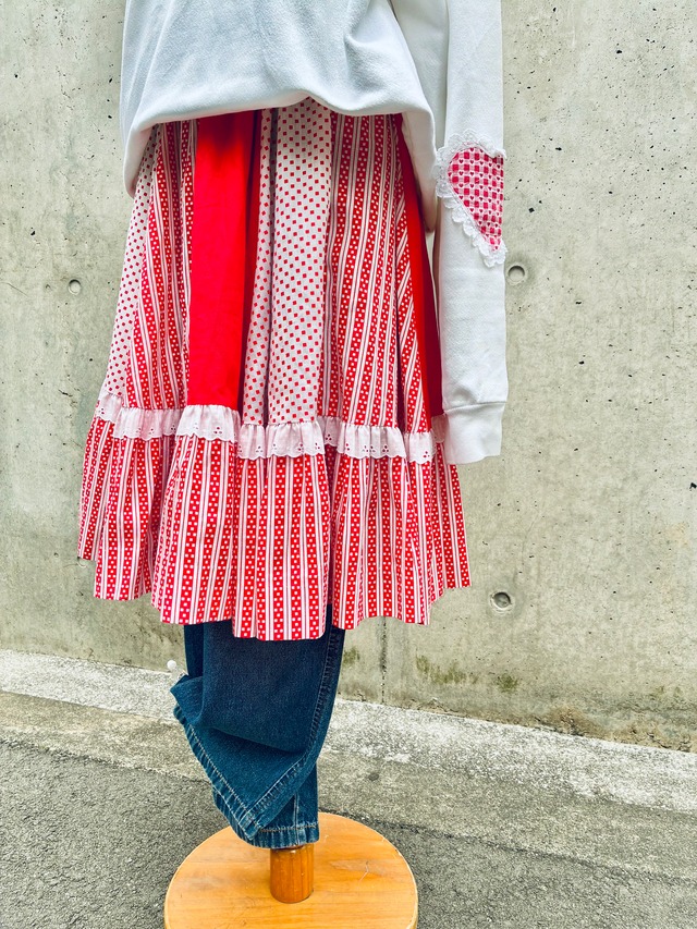 70-80's dot & stripe patchwork skirt "red"