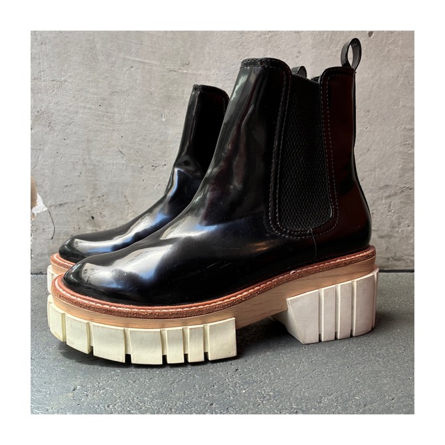 gianni bini のサイドゴアブーツ◎ エナメル素材です☻ 特徴は木製のプラットフォームとホワイトのラグソール✳︎ サイズ感はUS8.5なので日本サイズでは25.5cmほどです。 ブーツですので中敷きの使用や厚手の靴下を履かれる場合を想定して25cm前後の方にフィットすると思います。 状態:右足 側面 つまさきあたり 擦れアリ。 生地:エナメルレザー サイズ表記:「US8.5」 アウトソール:約28cm インソール:約25.5cm 筒丈:約16cm 靴底:約6.5cm ●当店はアメリカ買い付けの古着、vintage雑貨を扱っております。 usedなので程度は異なりますが、 中には目立つ汚れやダメージがあったり、ボタンやジッパーの欠損、生地が薄くなった商品といったものもございます。 ●サイズについて 平置き採寸しております。測定値の誤差はご了承下さい。 ●説明文や商品画像でご紹介しておりますが、 ダメージや汚れがご心配なお客様は、ご注文前にお気軽にご相談下さい。 ●また、商品画像は出来る限り実物の物と同じ色味になるよう撮影しておりますが、多少異なる場合もございます。 上記内容にご理解いただけないお客様、商品状態が心配なお客様は、恐れ入りますがご購入をお勧めしませんので、ご確認宜しくお願い致します。
