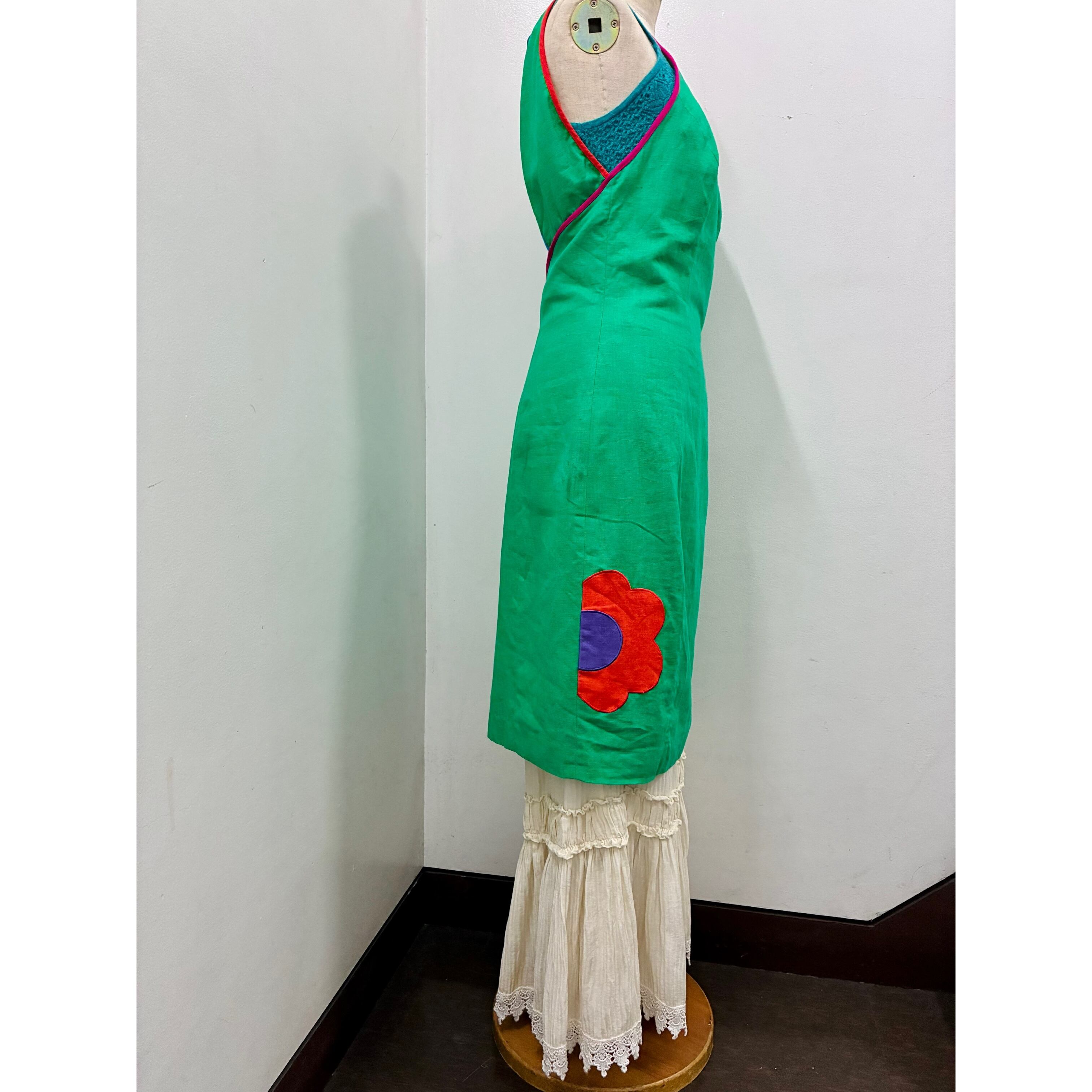 80-90's sleeveless colorful piping dress