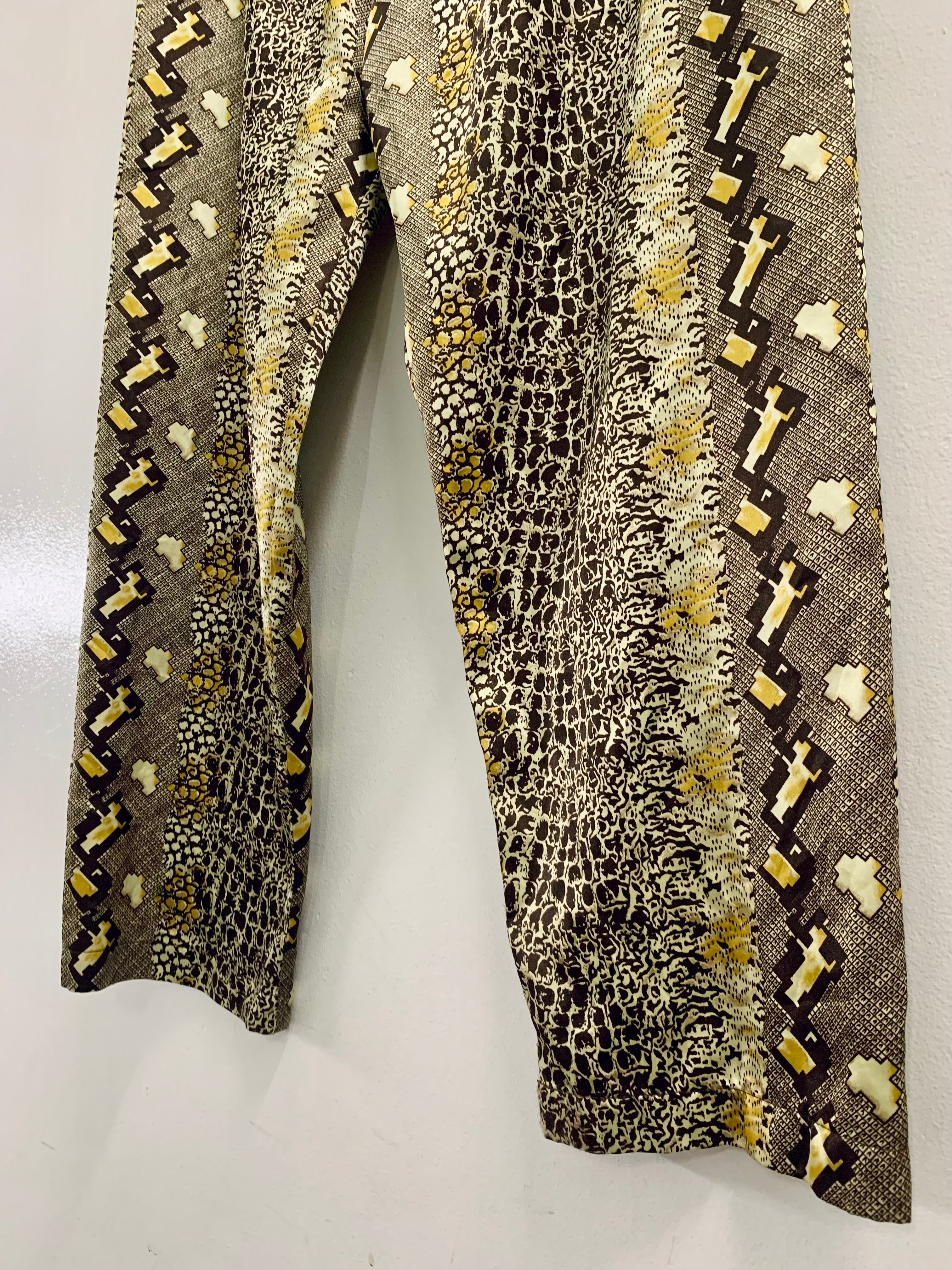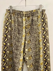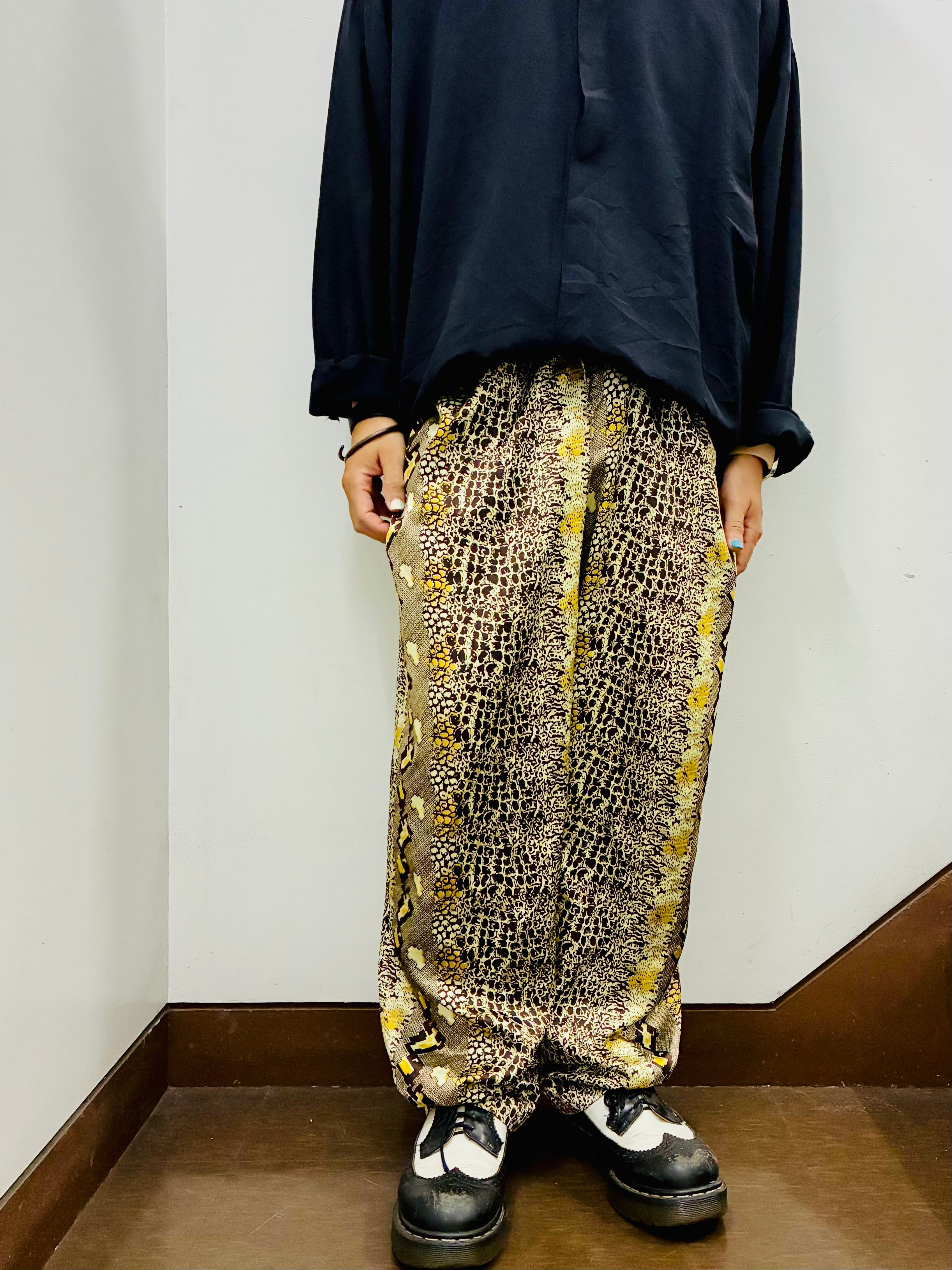 異なるスネークスキンの柄をミックスした存在感抜群のパンツです。