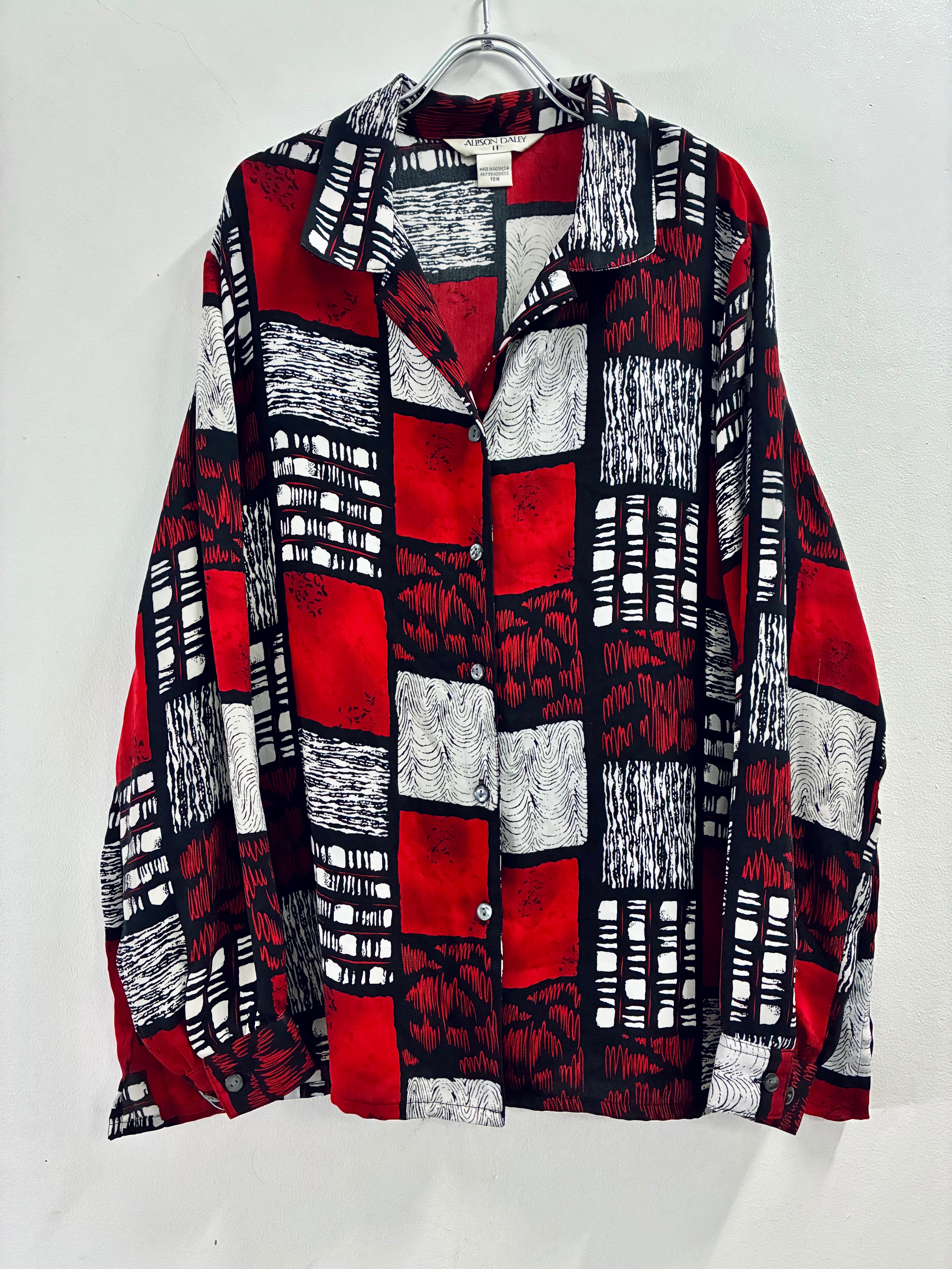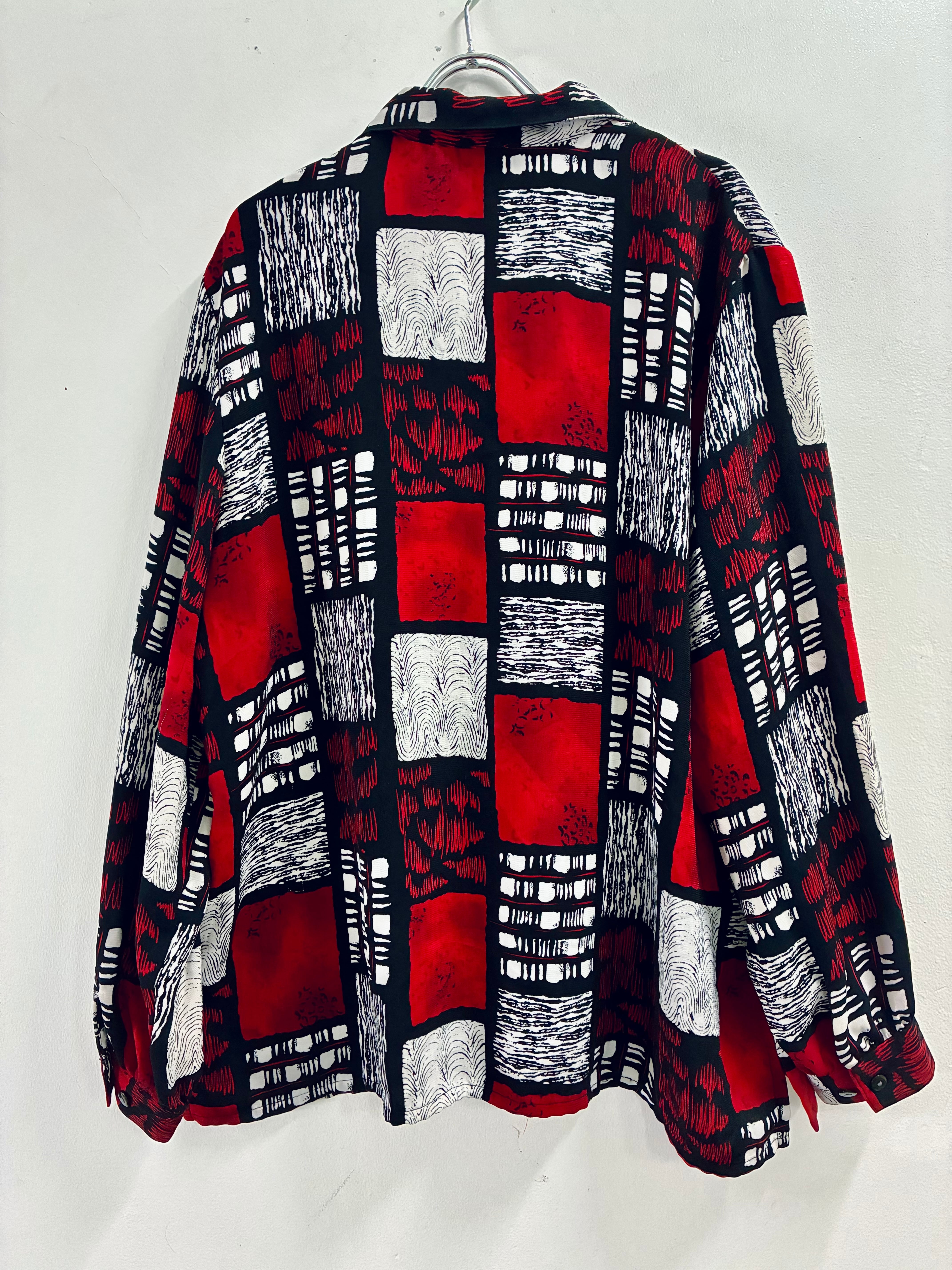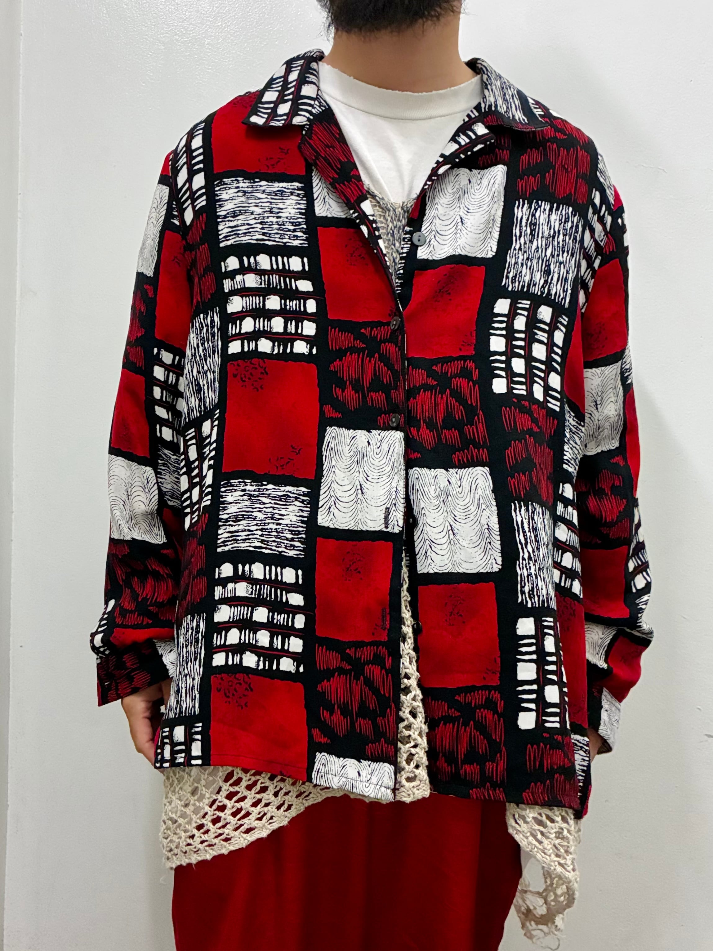 90年代のアブストラクトブロックパターンが目を引くオープンカラーの長袖シャツです◎