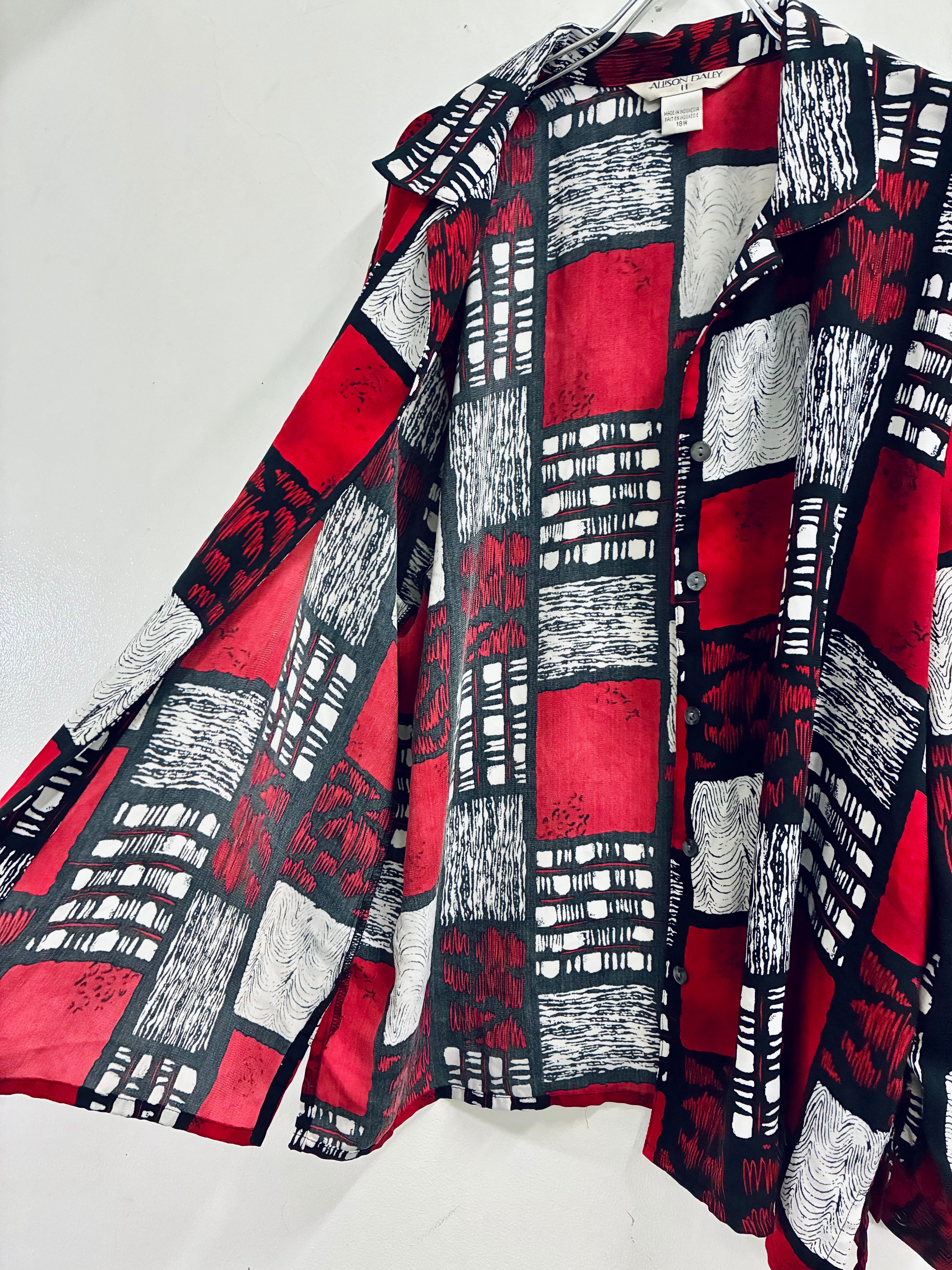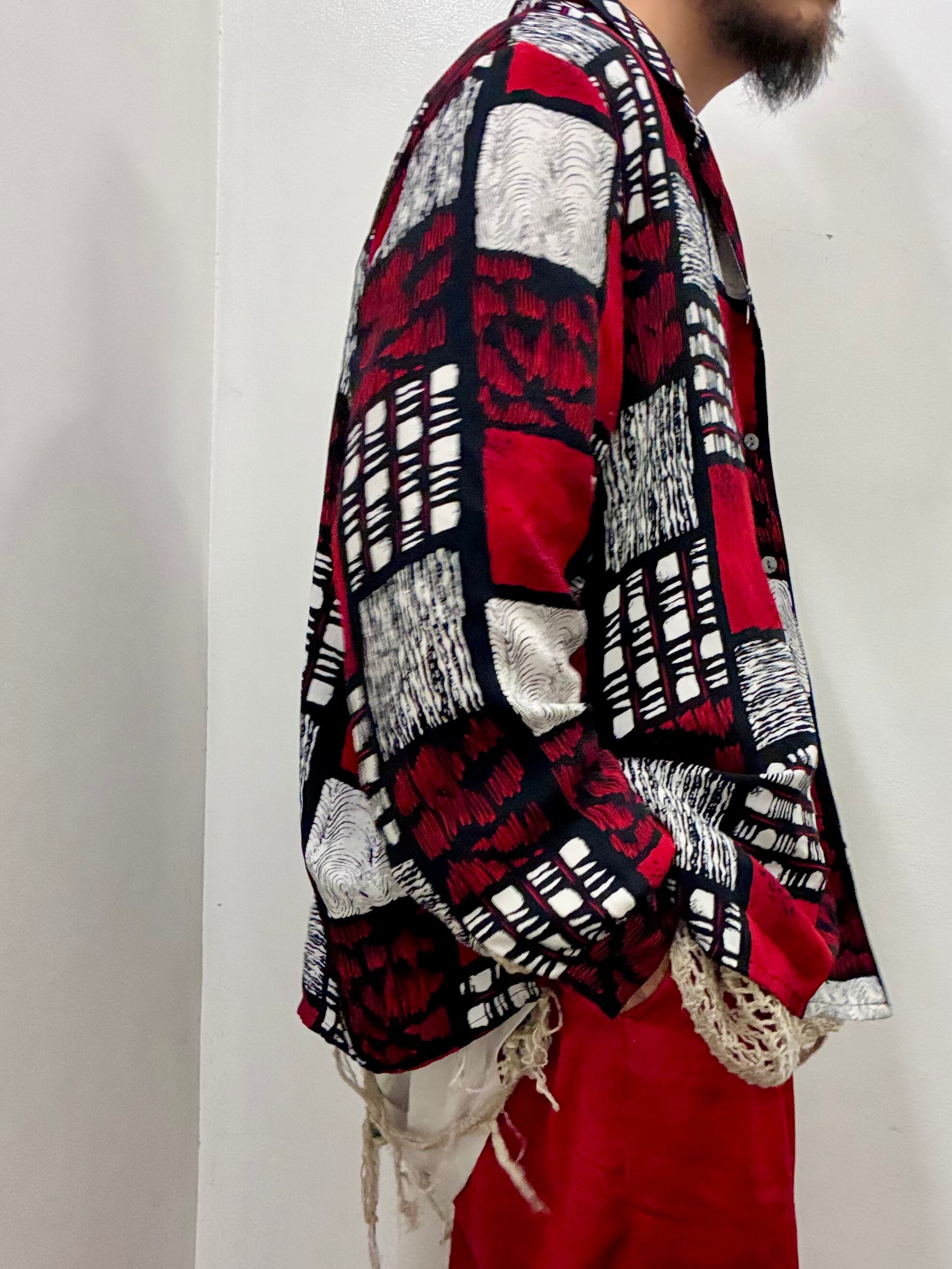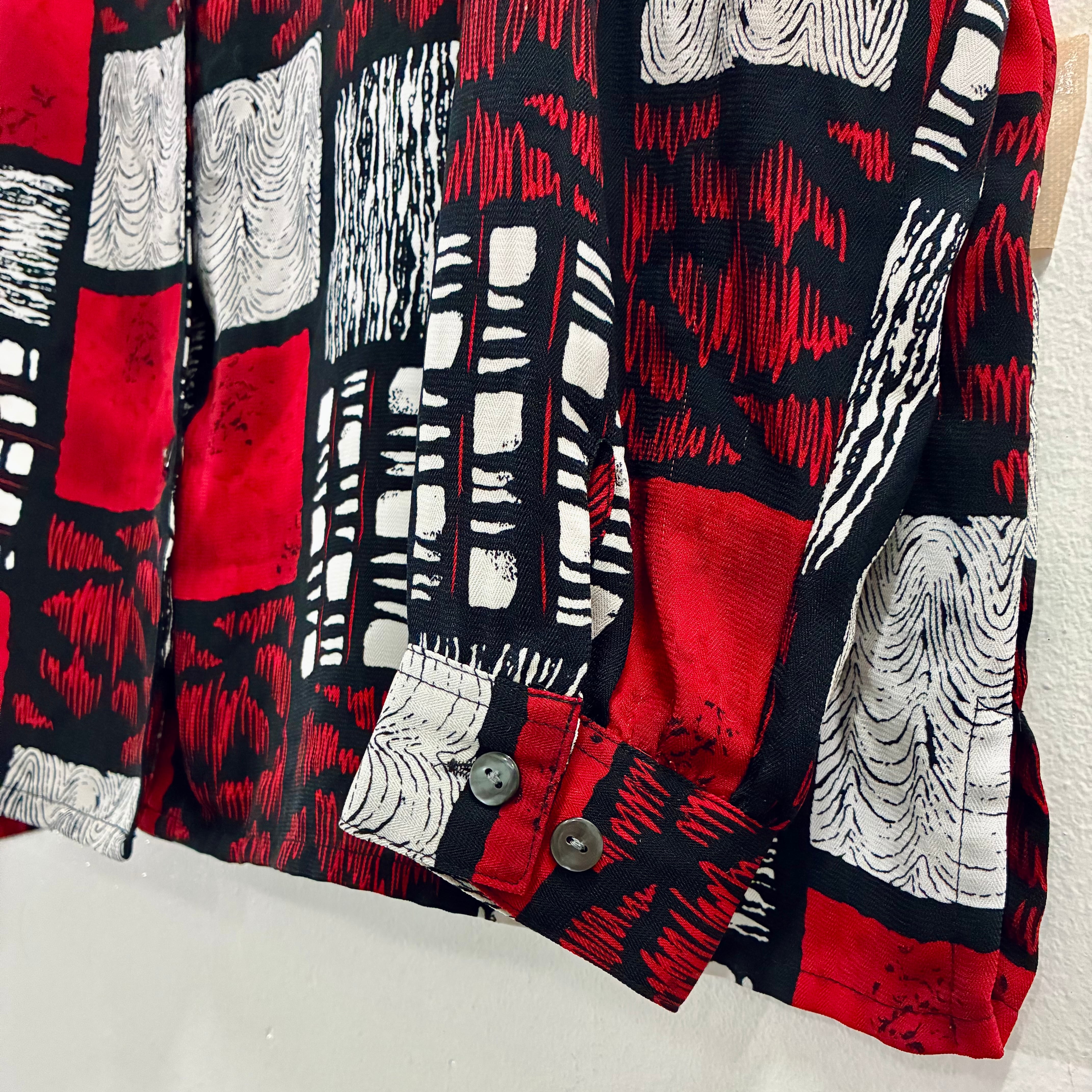 90年代のアブストラクトブロックパターンが目を引くオープンカラーの長袖シャツです◎