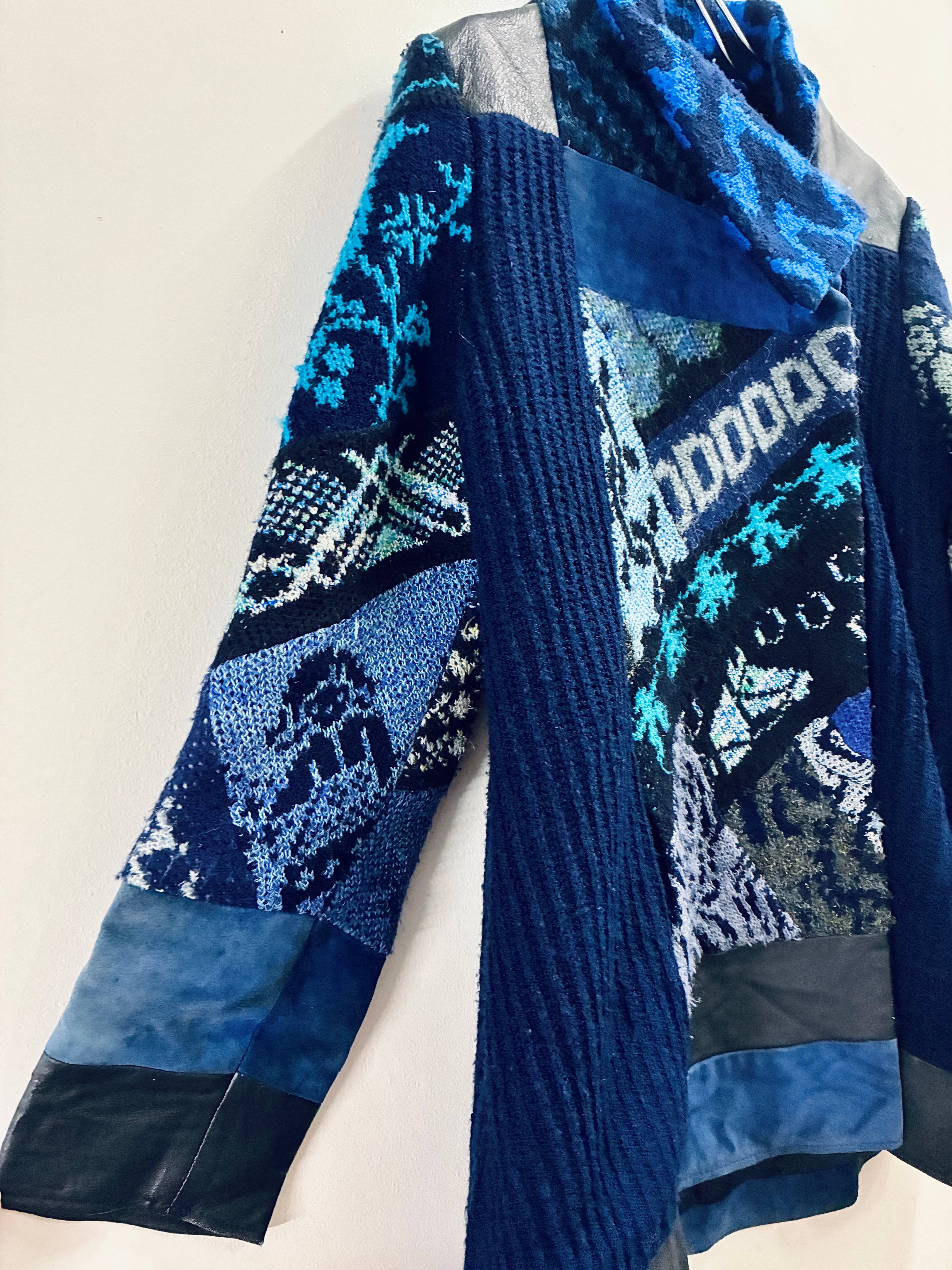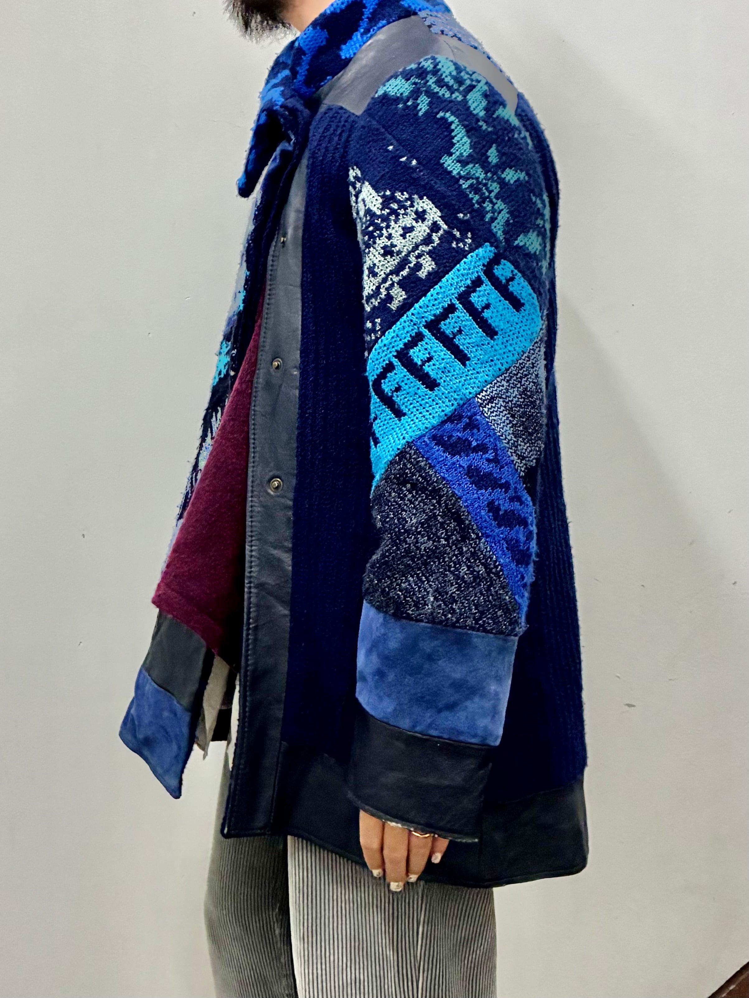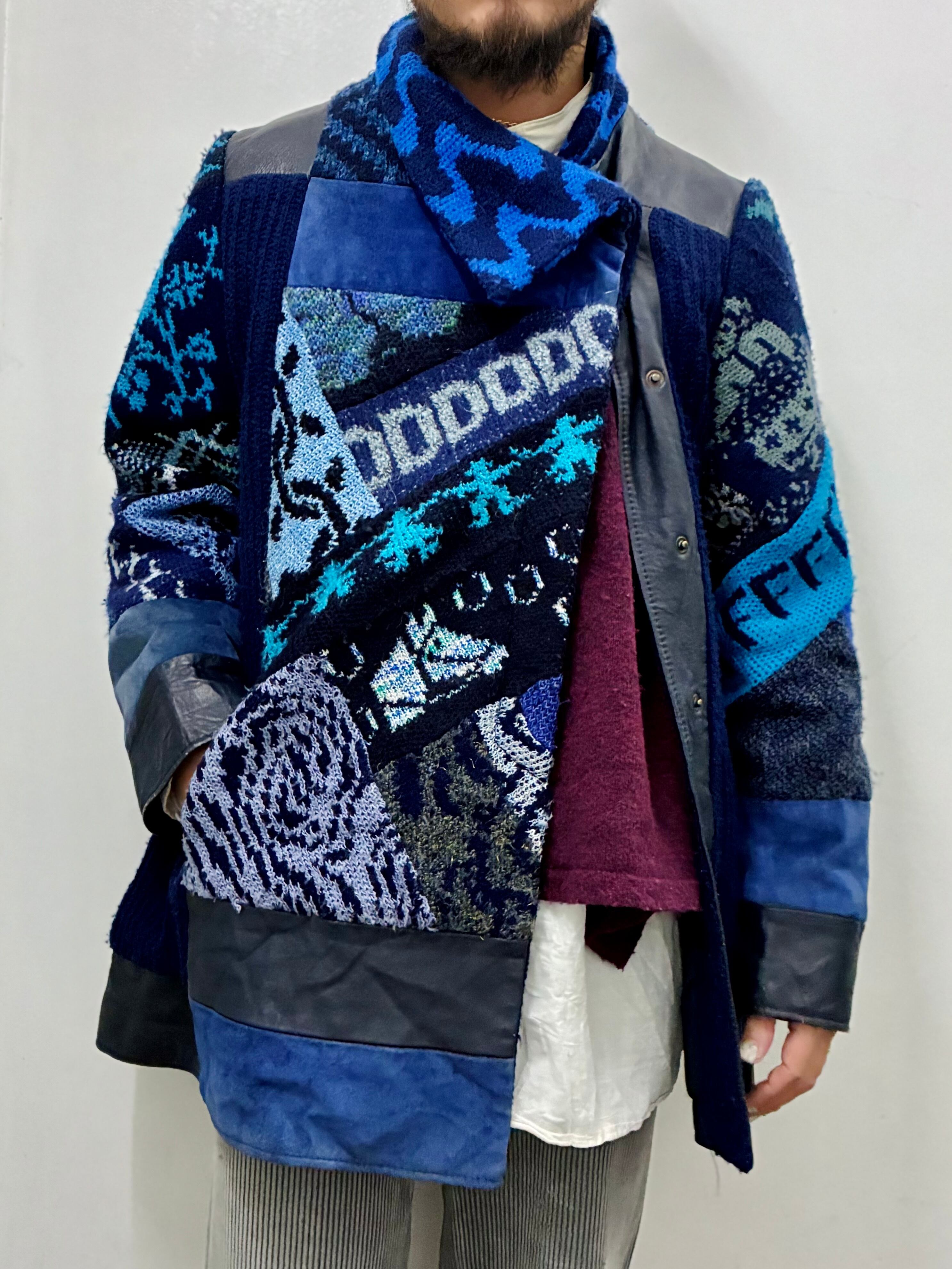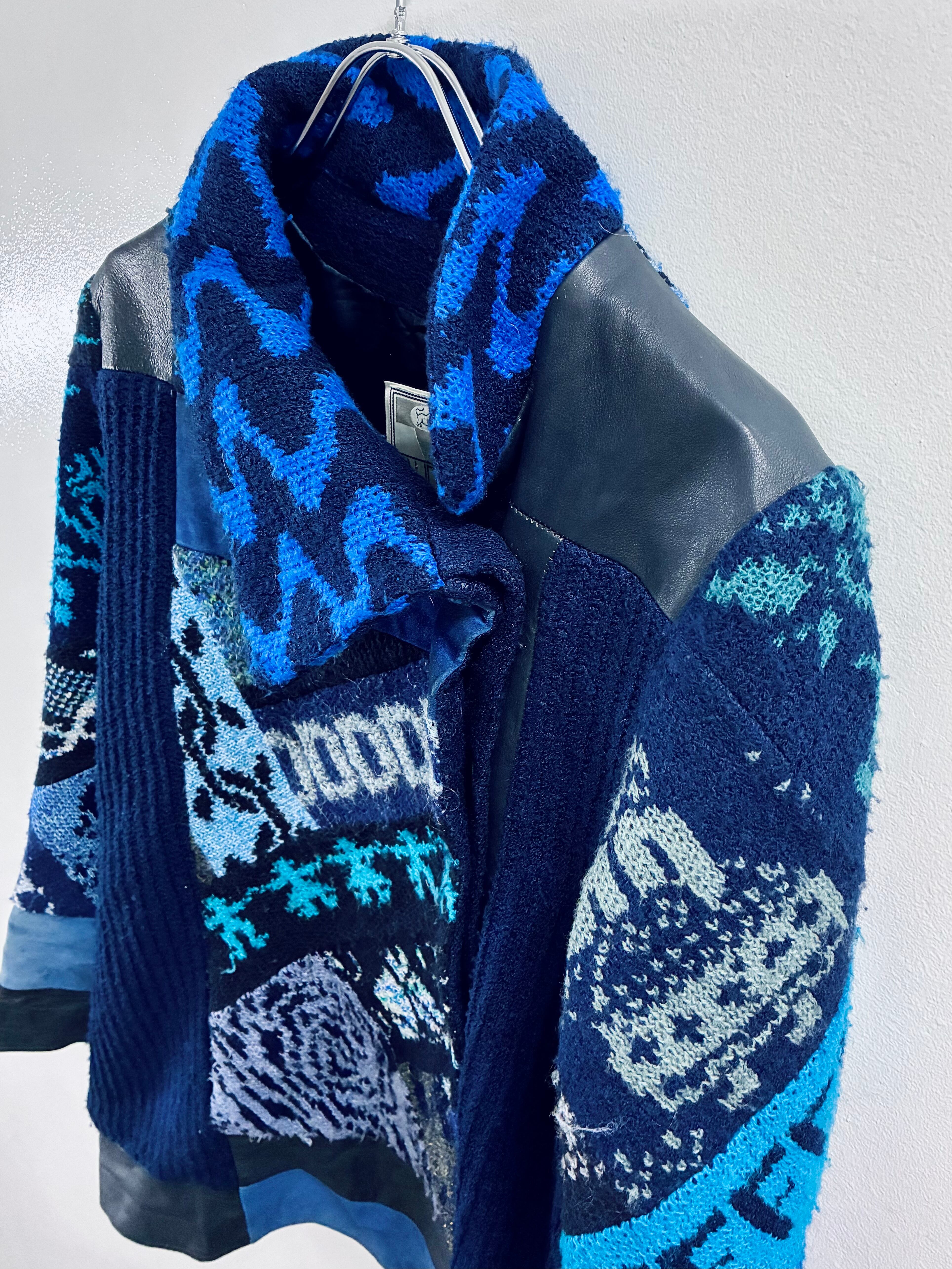 表地はおそらくアクリルニット、ラムレザーの切り替え