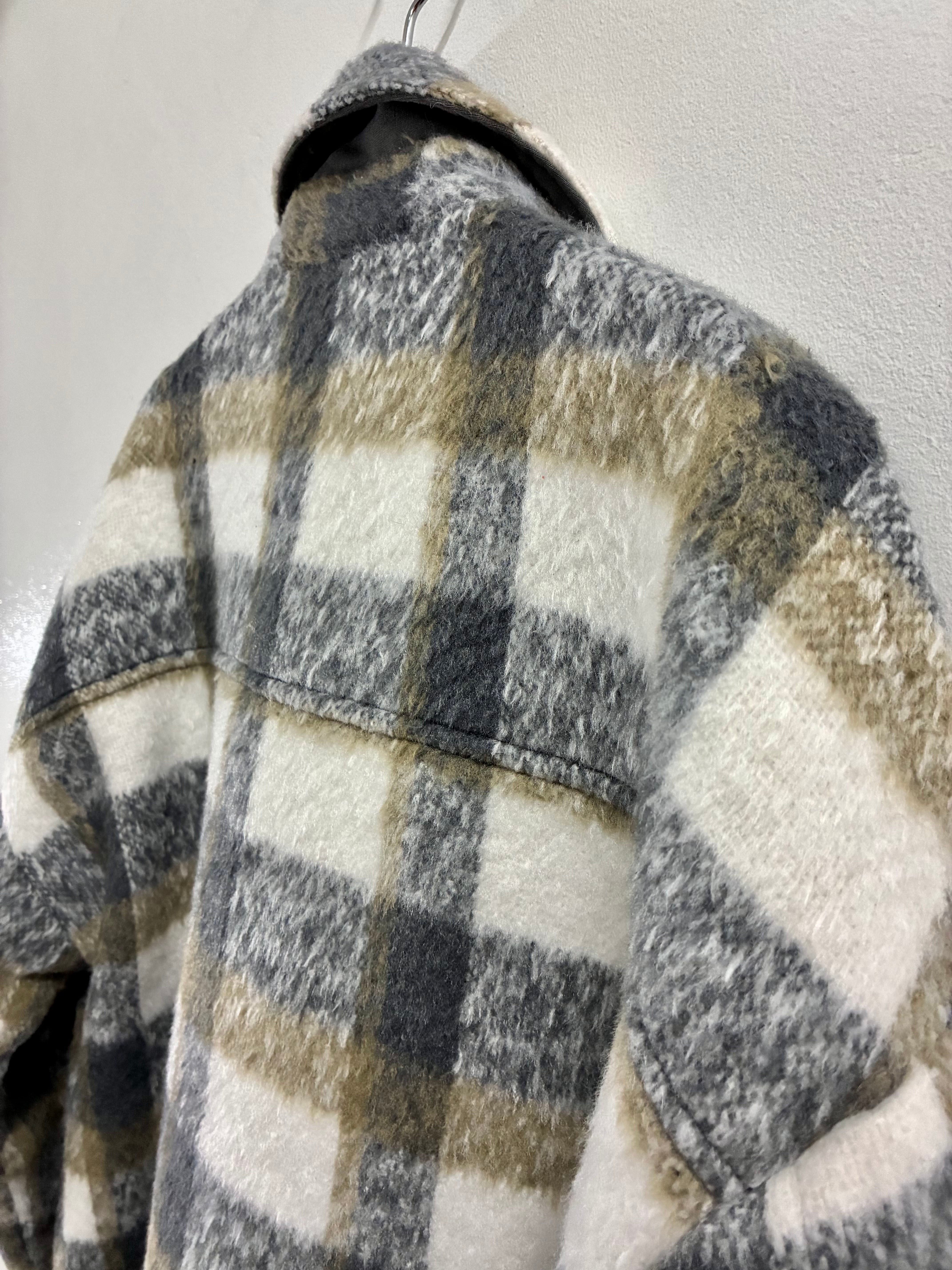独特のシャギー素材とチェック柄が融合したデザインは、カジュアルなスタイルにピッタリで、さまざまなコーディネートにマッチします。ゆったりとしたシルエットが、リラックスした着心地を提供します。男女問わずお勧めの一着です!