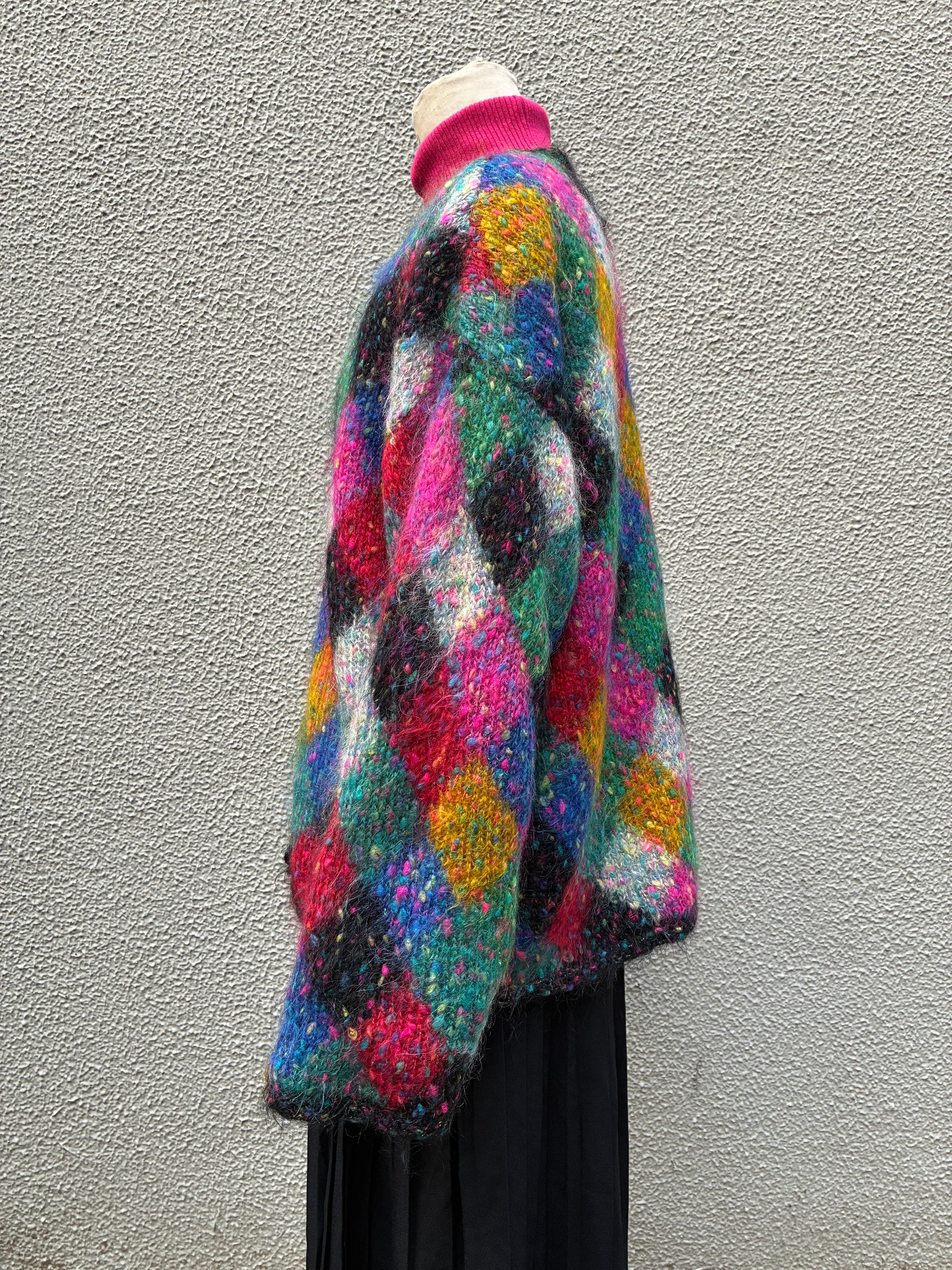 80's multicolor mohair knit cardigan