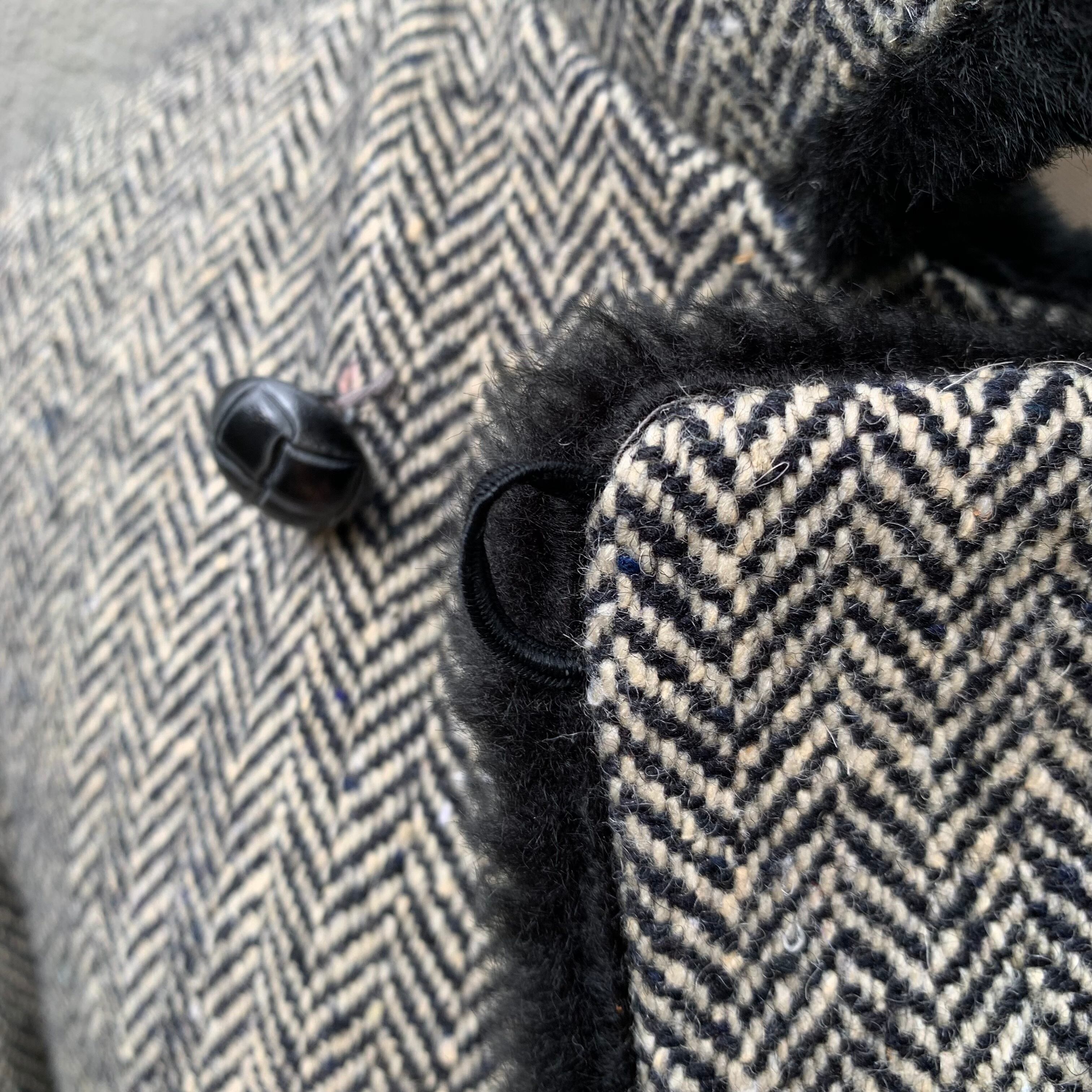 表地は肉厚で高級感のあるヘリンボーンツイード。 裏地には暖かいボア、袖裏は滑りの良いキルティング仕様と、防寒性は完璧です☻