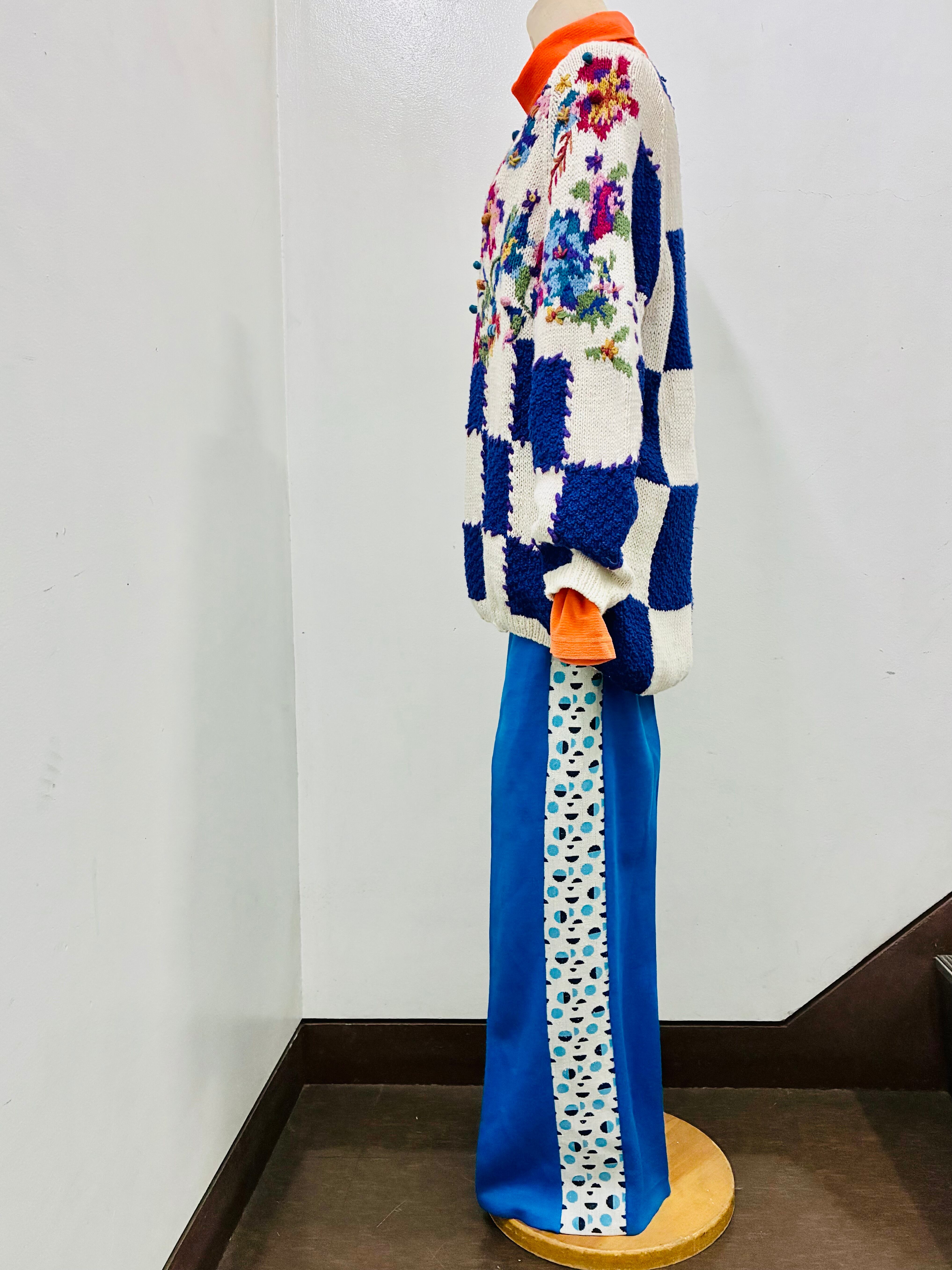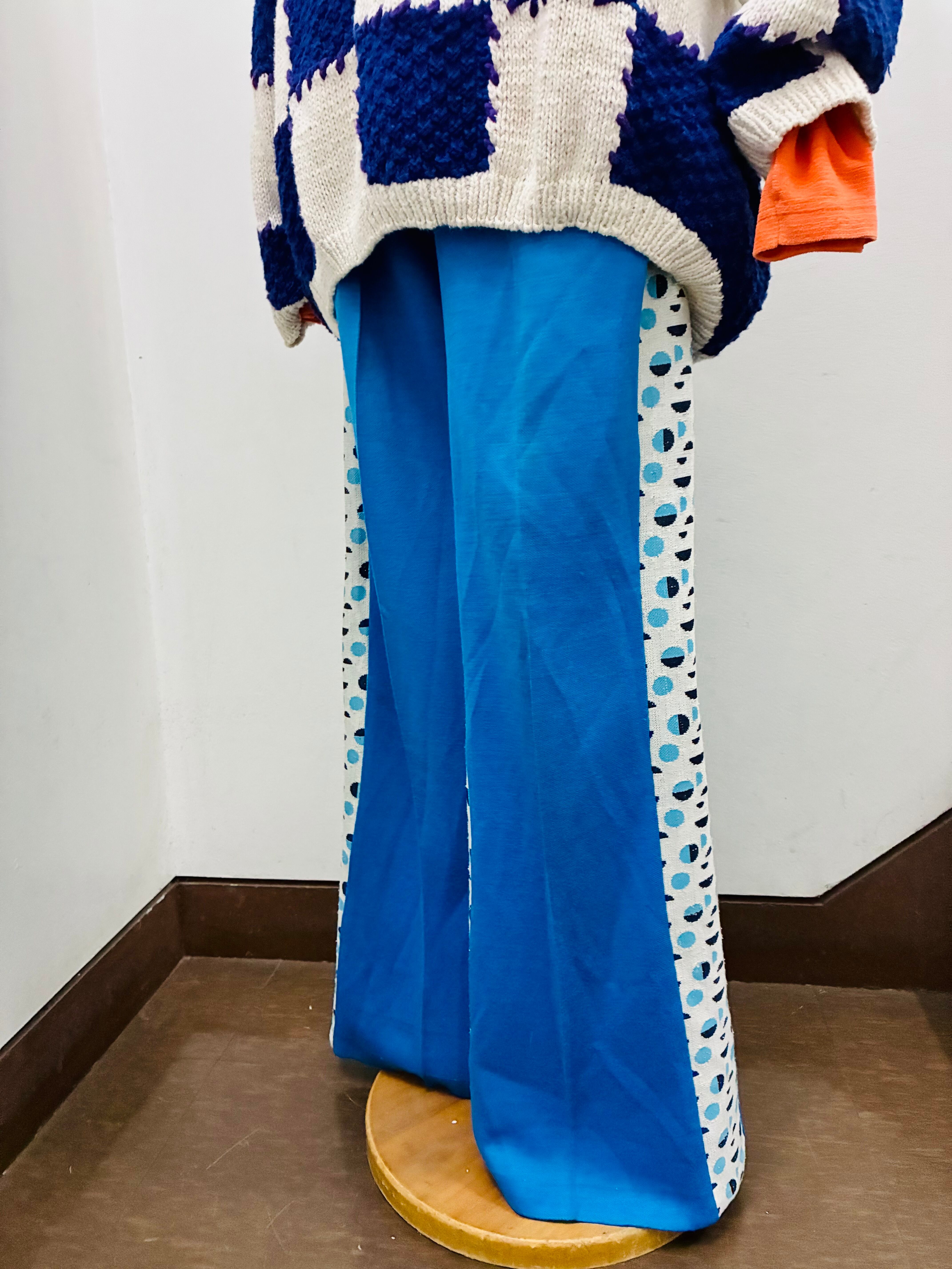 サイドと内股に幾何学柄の生地がドッキングされてます☻