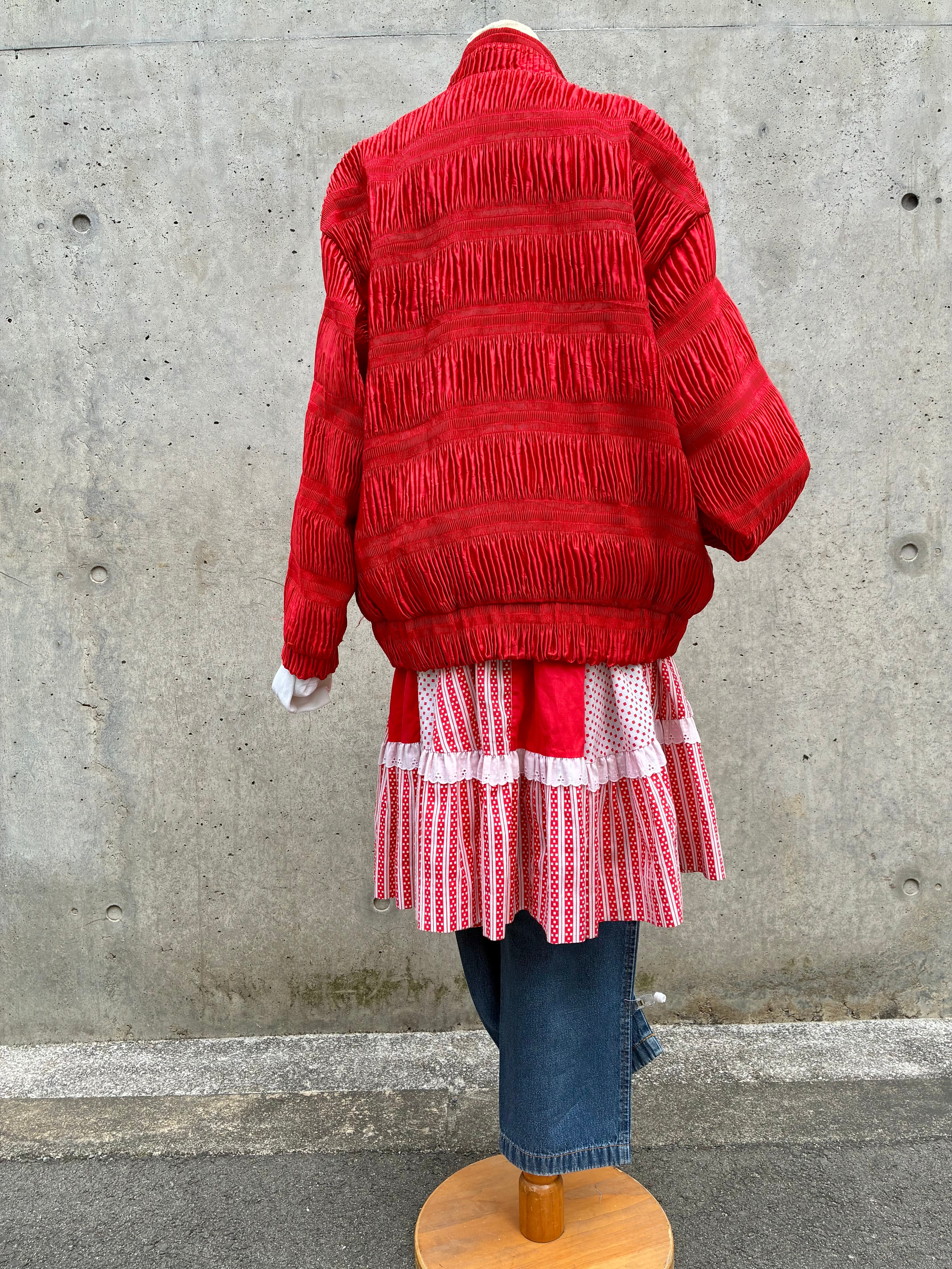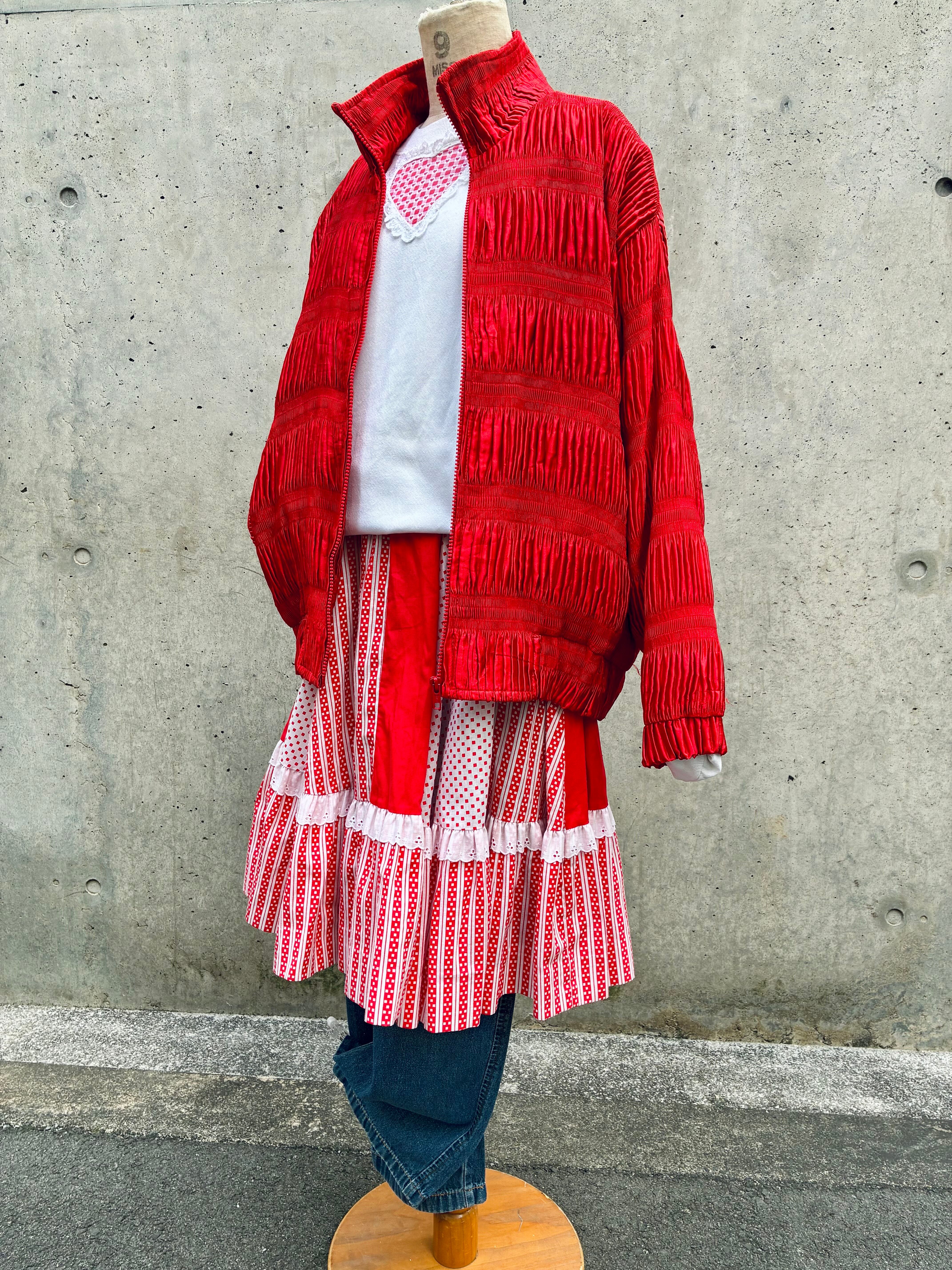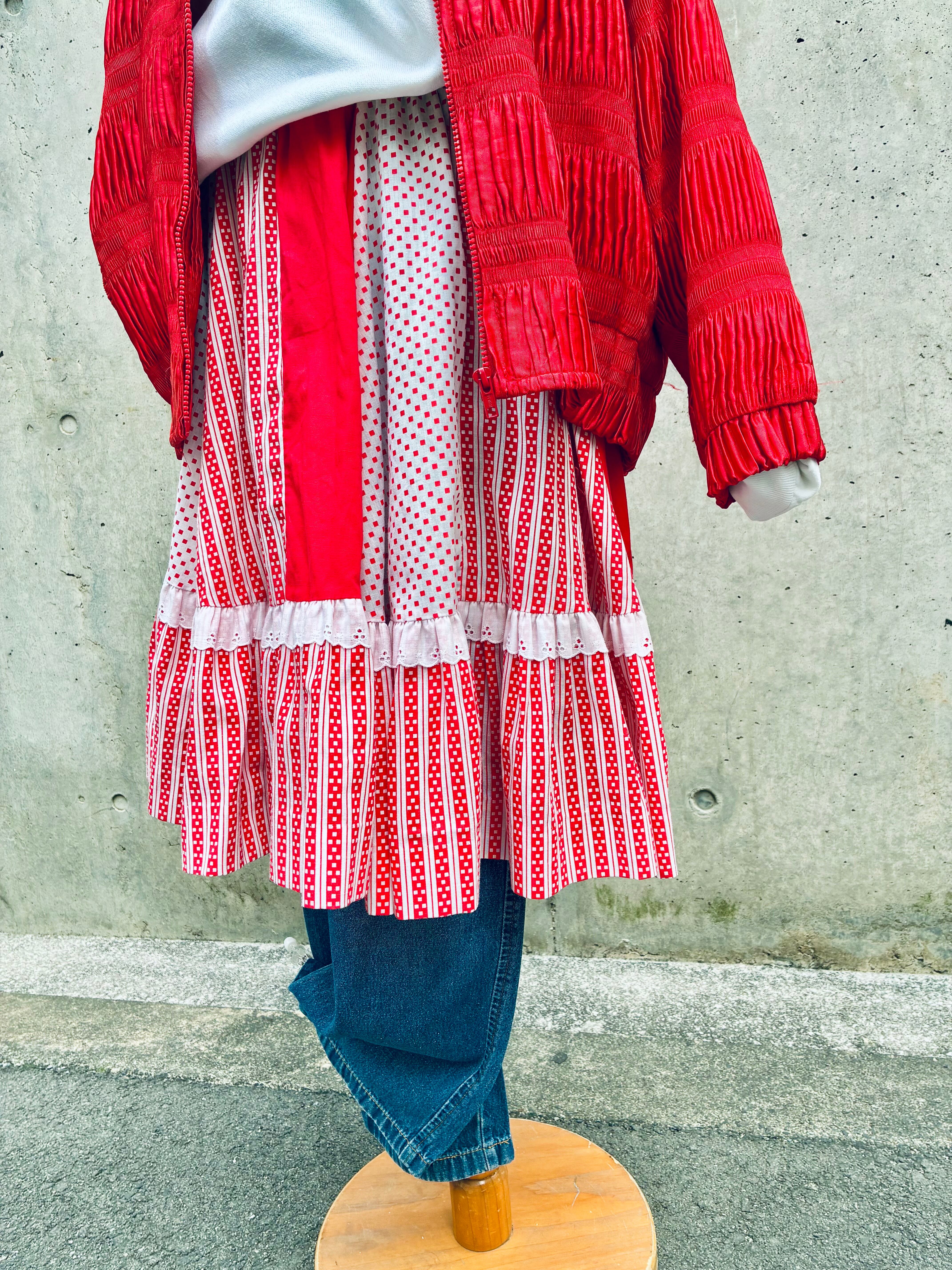 70-80's dot & stripe patchwork skirt "red"