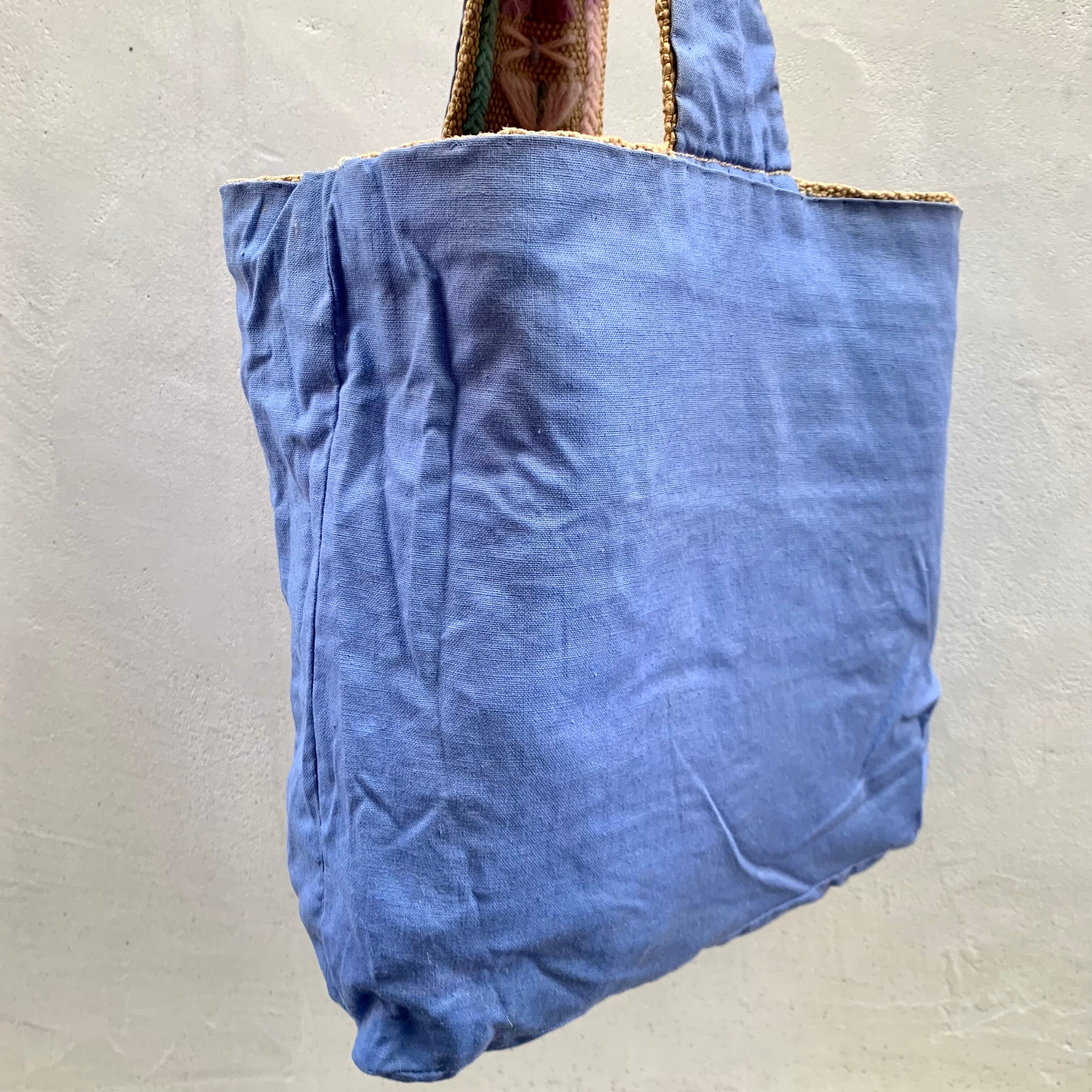 マチ付きでコットンの裏地もしっかりついており、味のあるブルー。