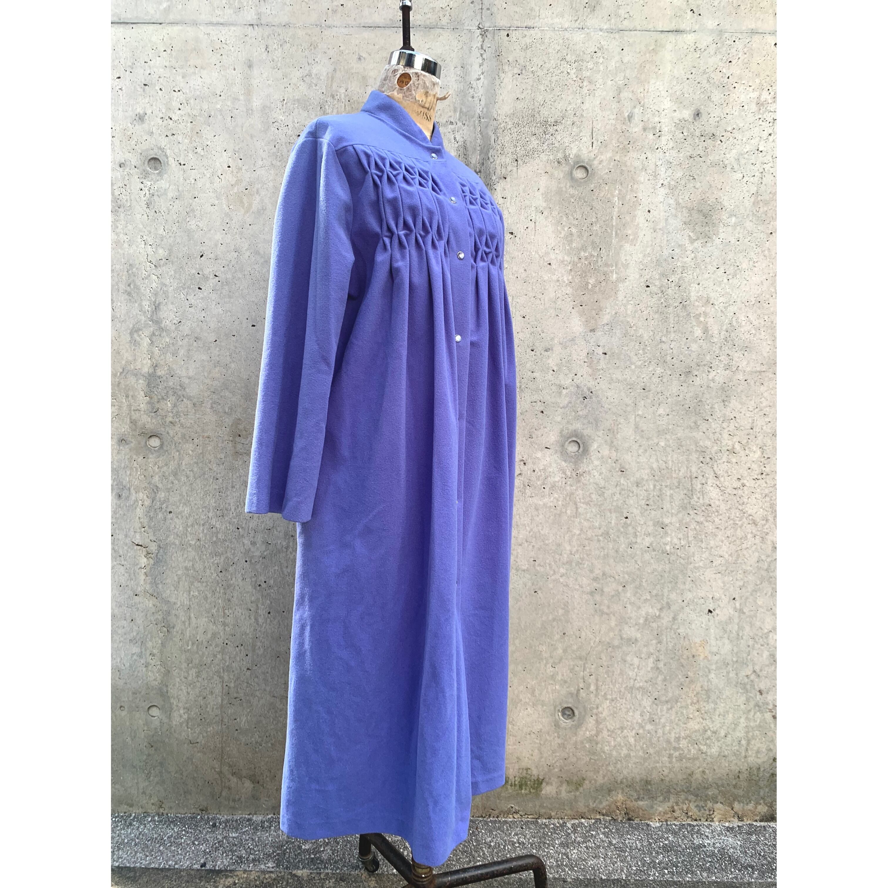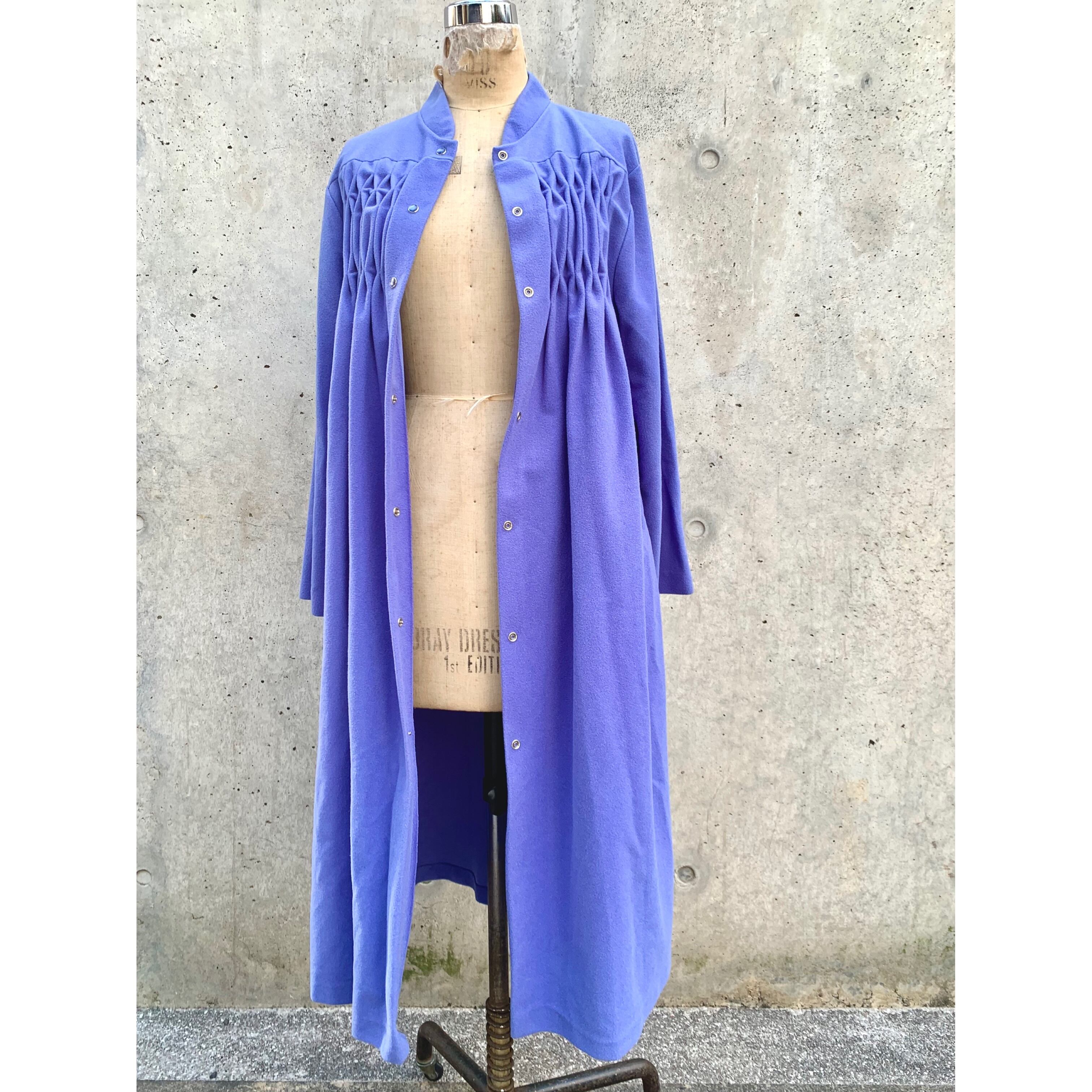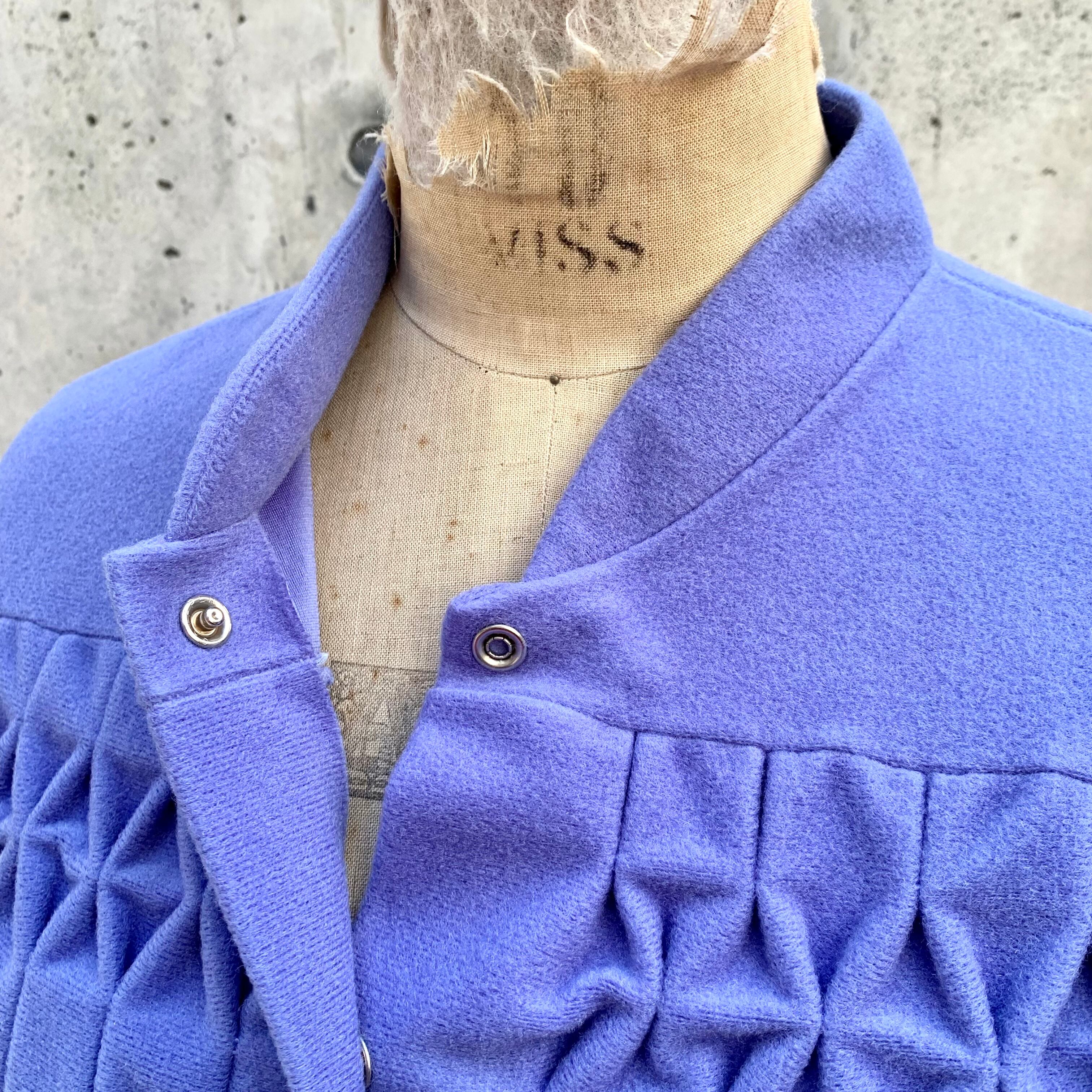 立ち襟、胸元の飾りステッチ、淡いパープルの色味がレトロな雰囲気✳︎