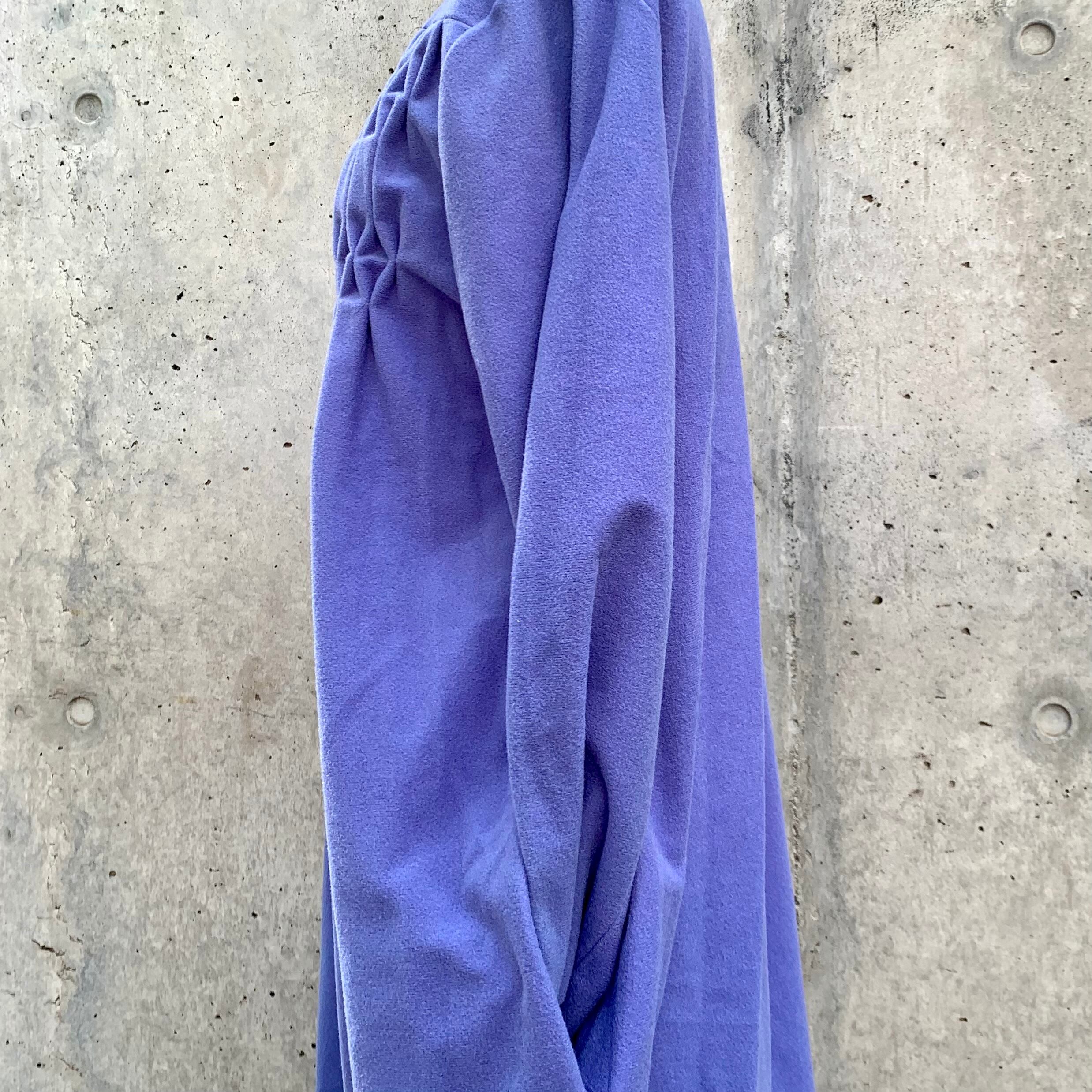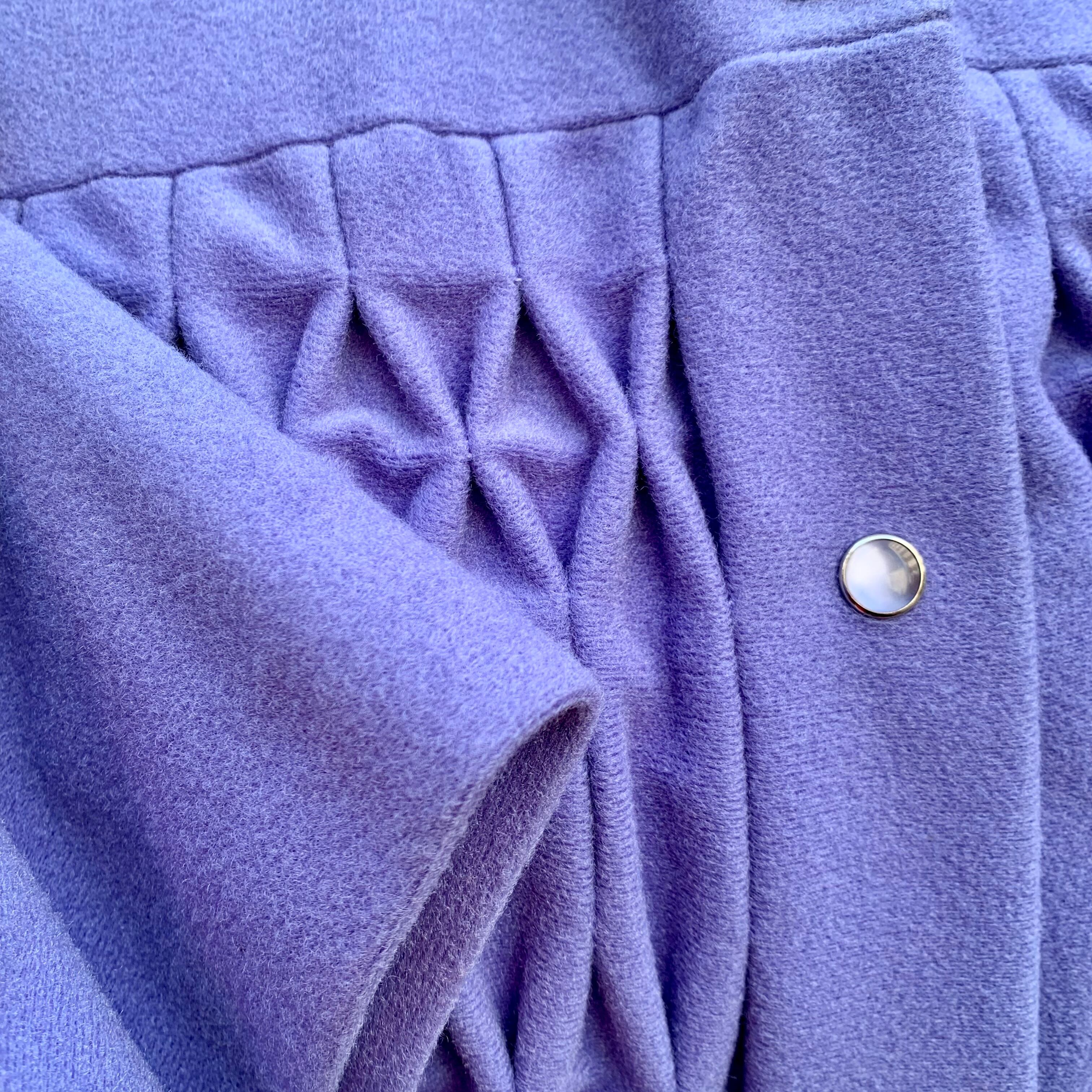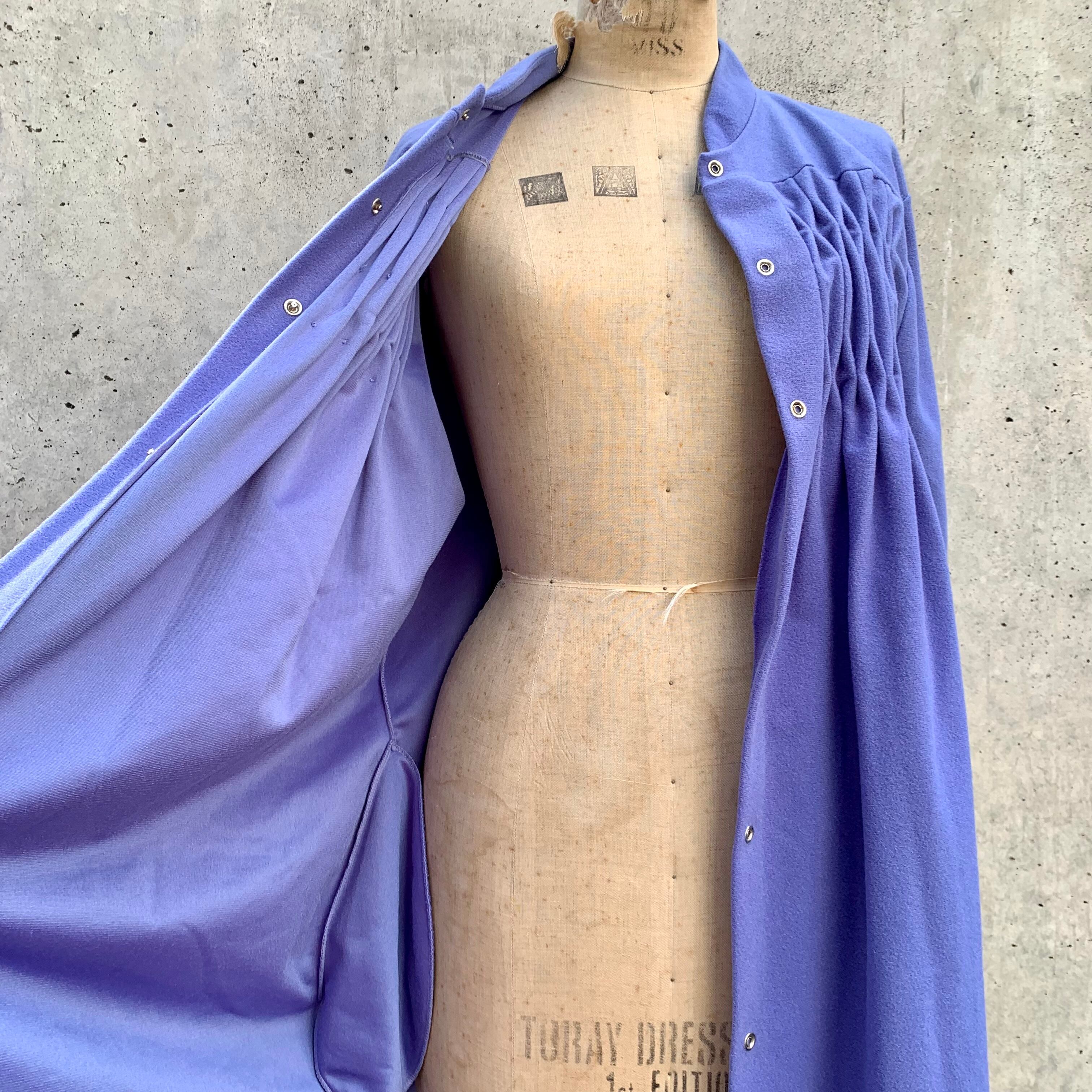 立ち襟、胸元の飾りステッチ、淡いパープルの色味がレトロな雰囲気✳︎