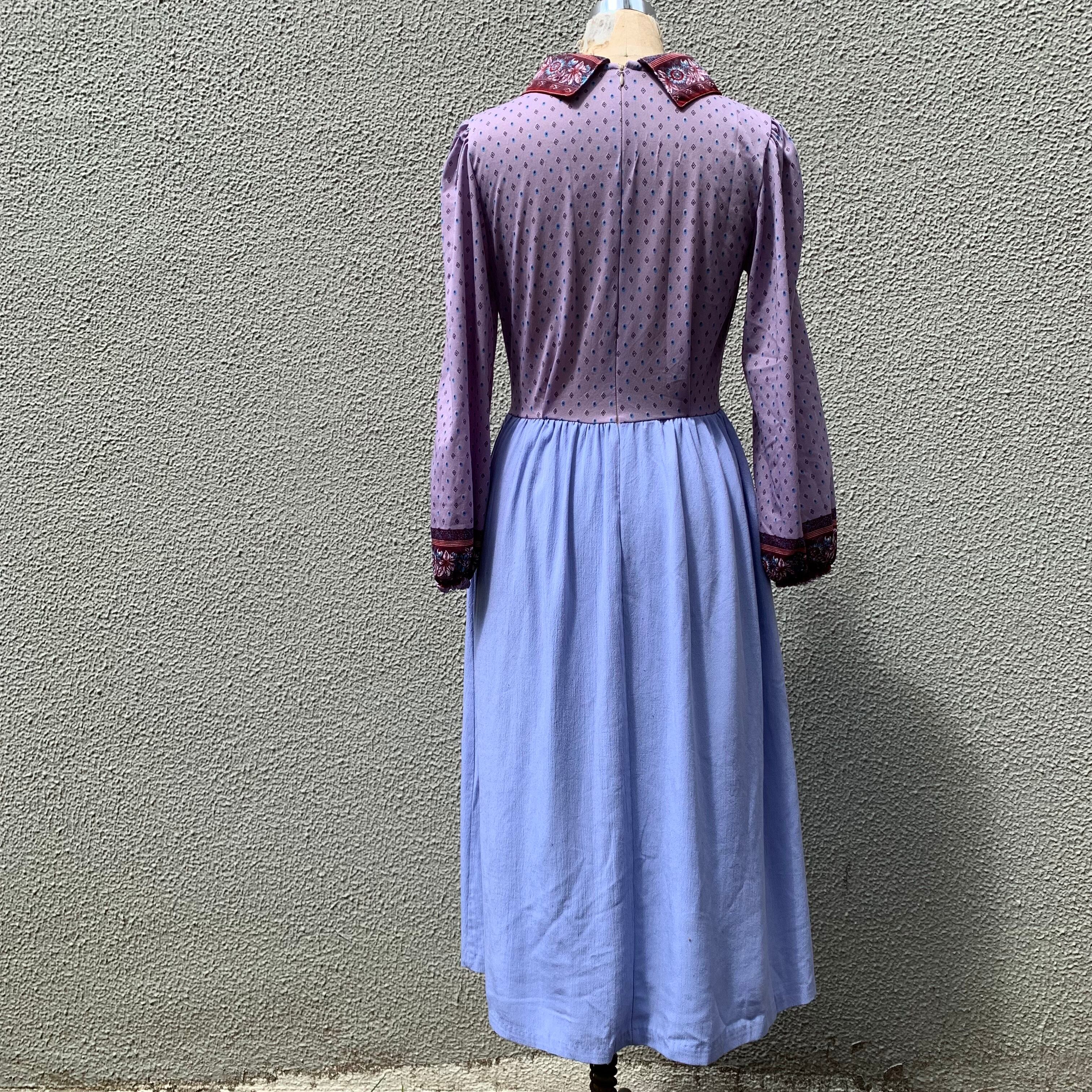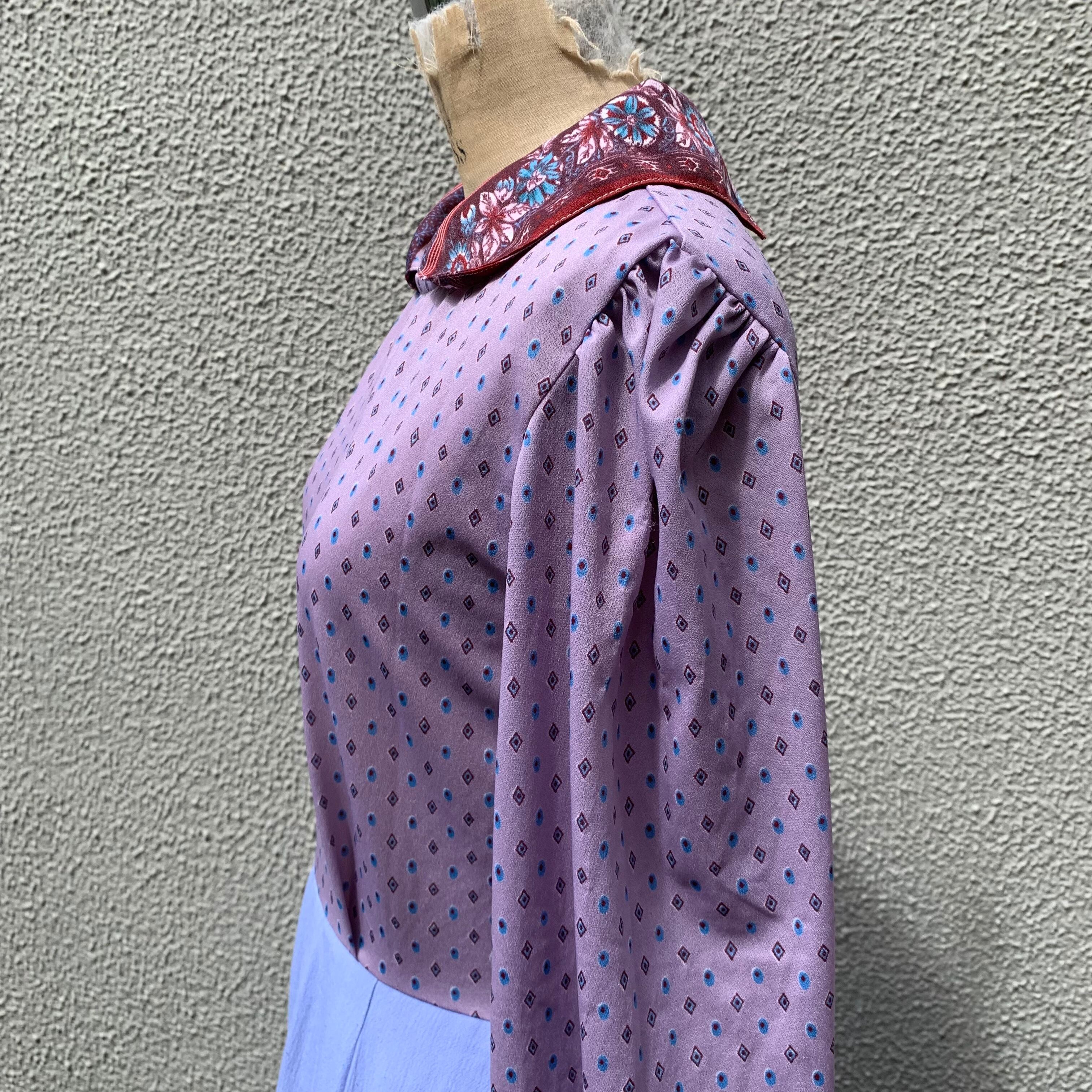 2種類の生地を使用しした、パープルのくすみカラーが素敵なワンピース。