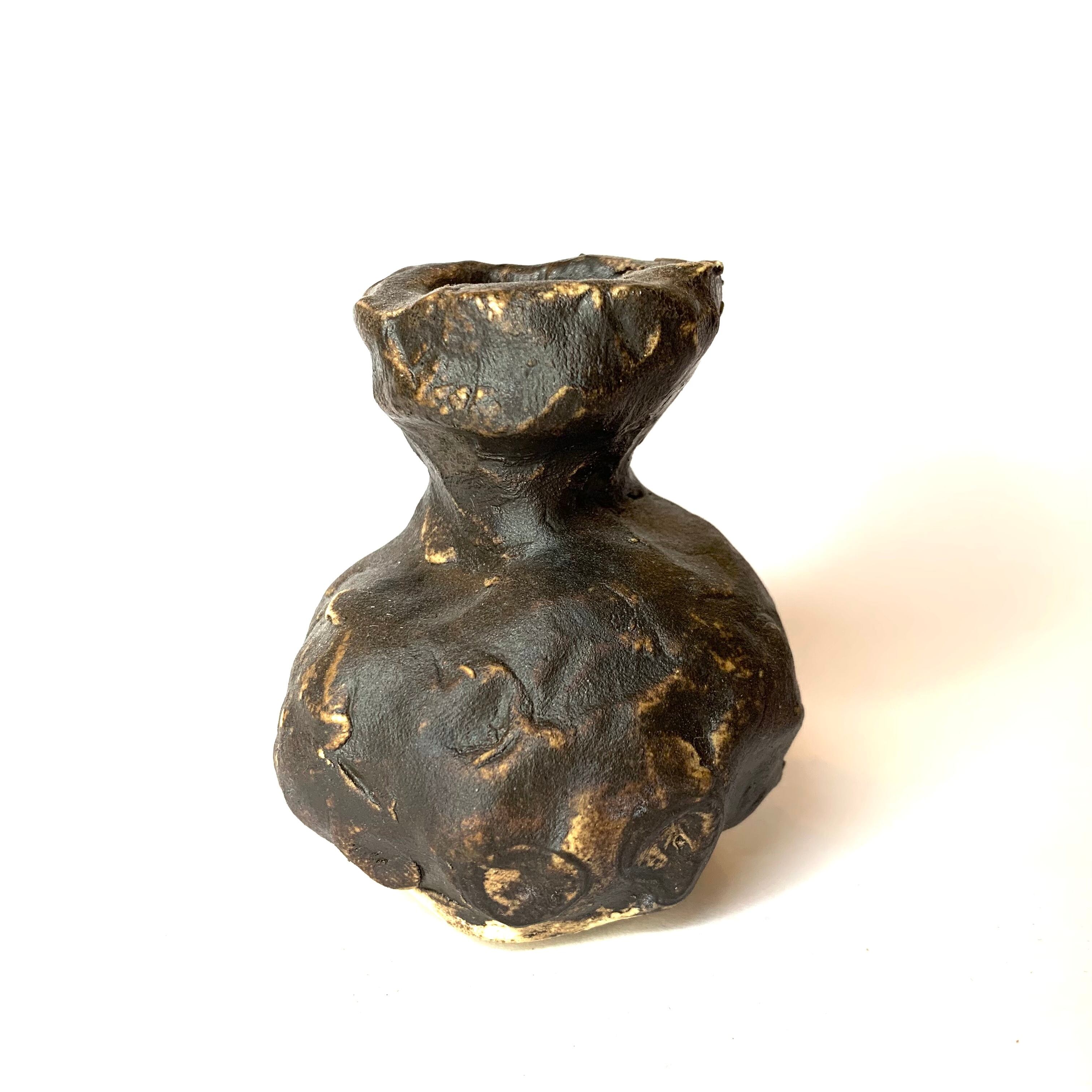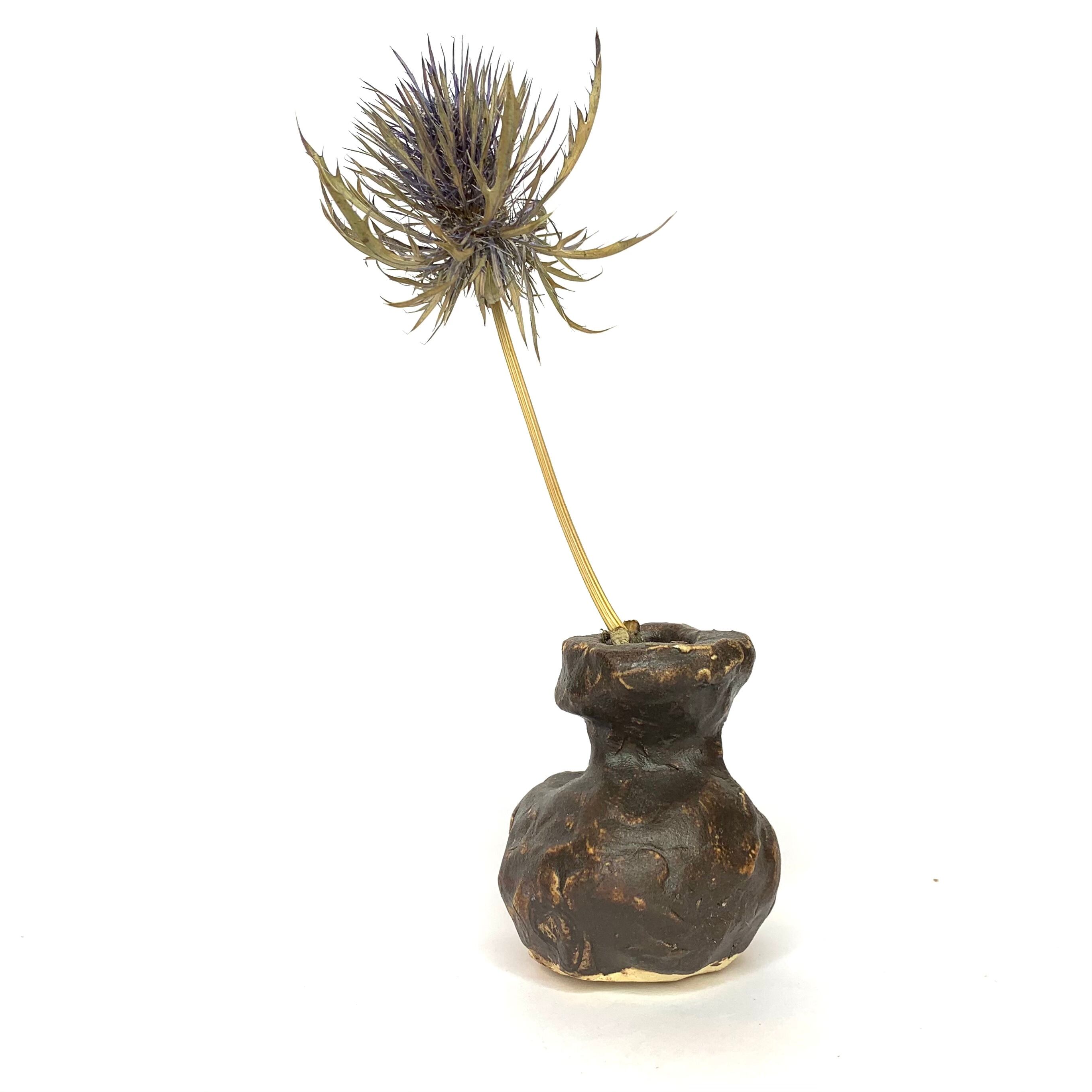 強弱のついた凹凸、ムラのある着色が良い風合いのフラワーベース。