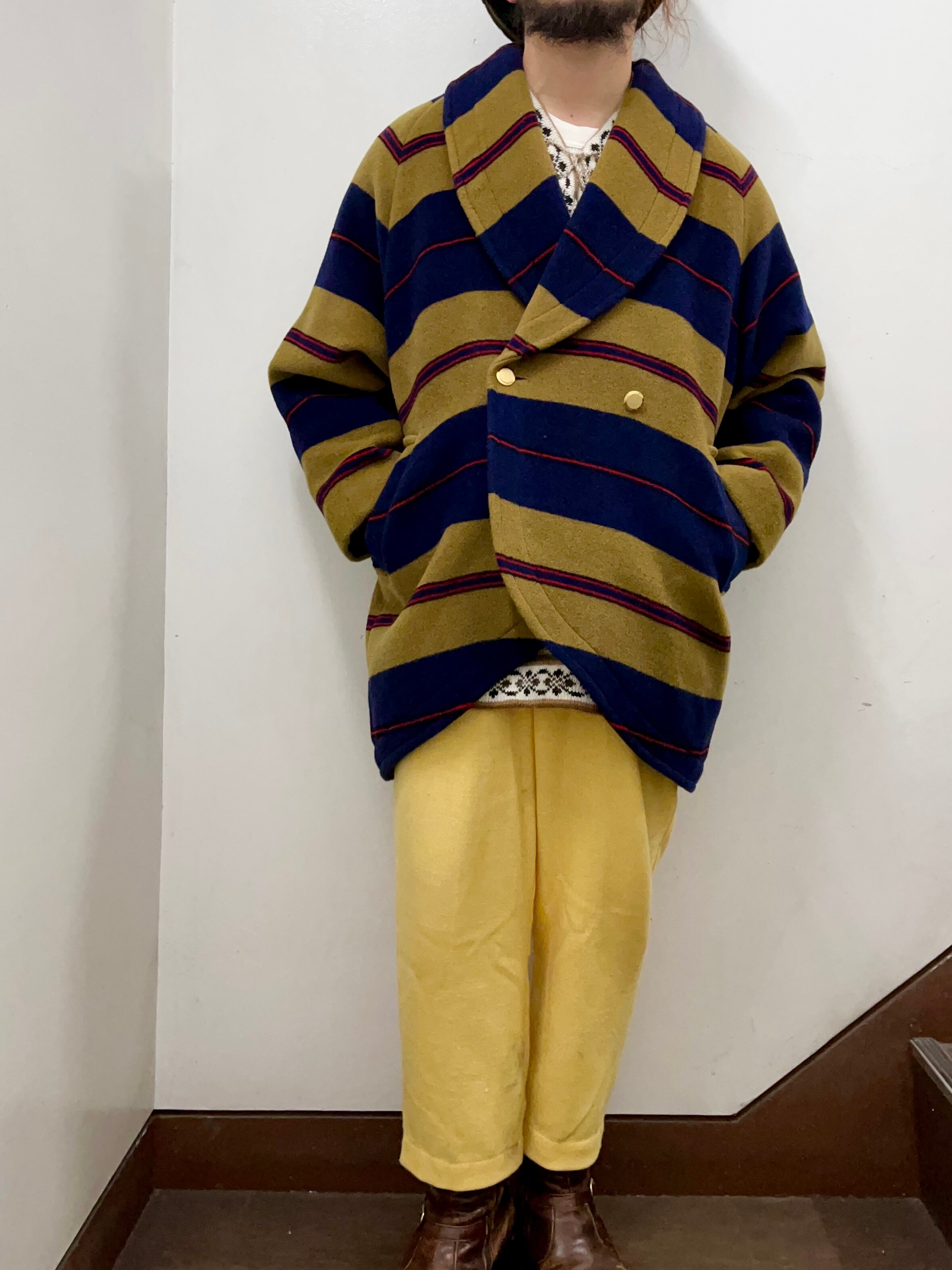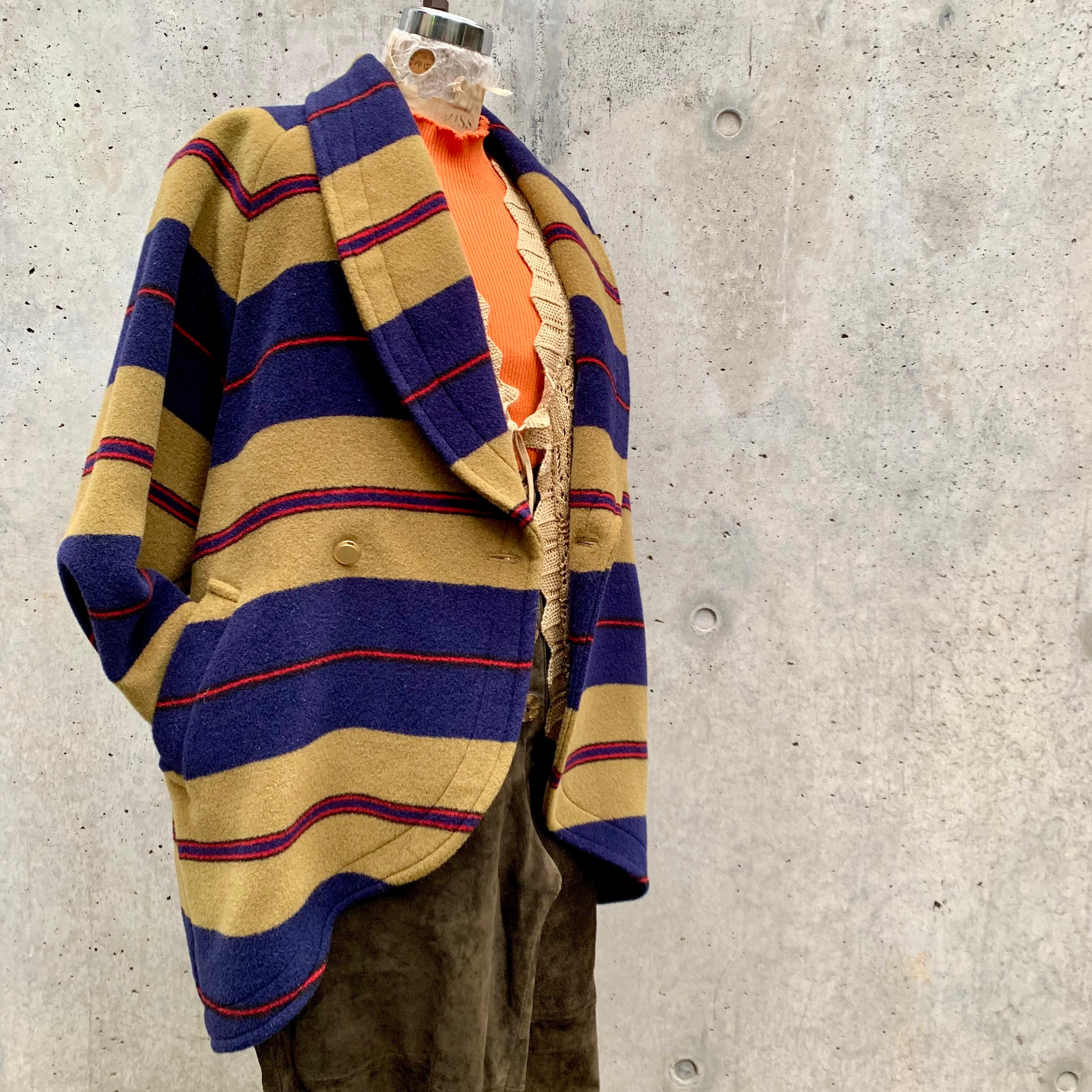 大きなラペルが特徴のヘチマ襟で、ポンチョのように丸みのある可愛らしいシルエットです☻