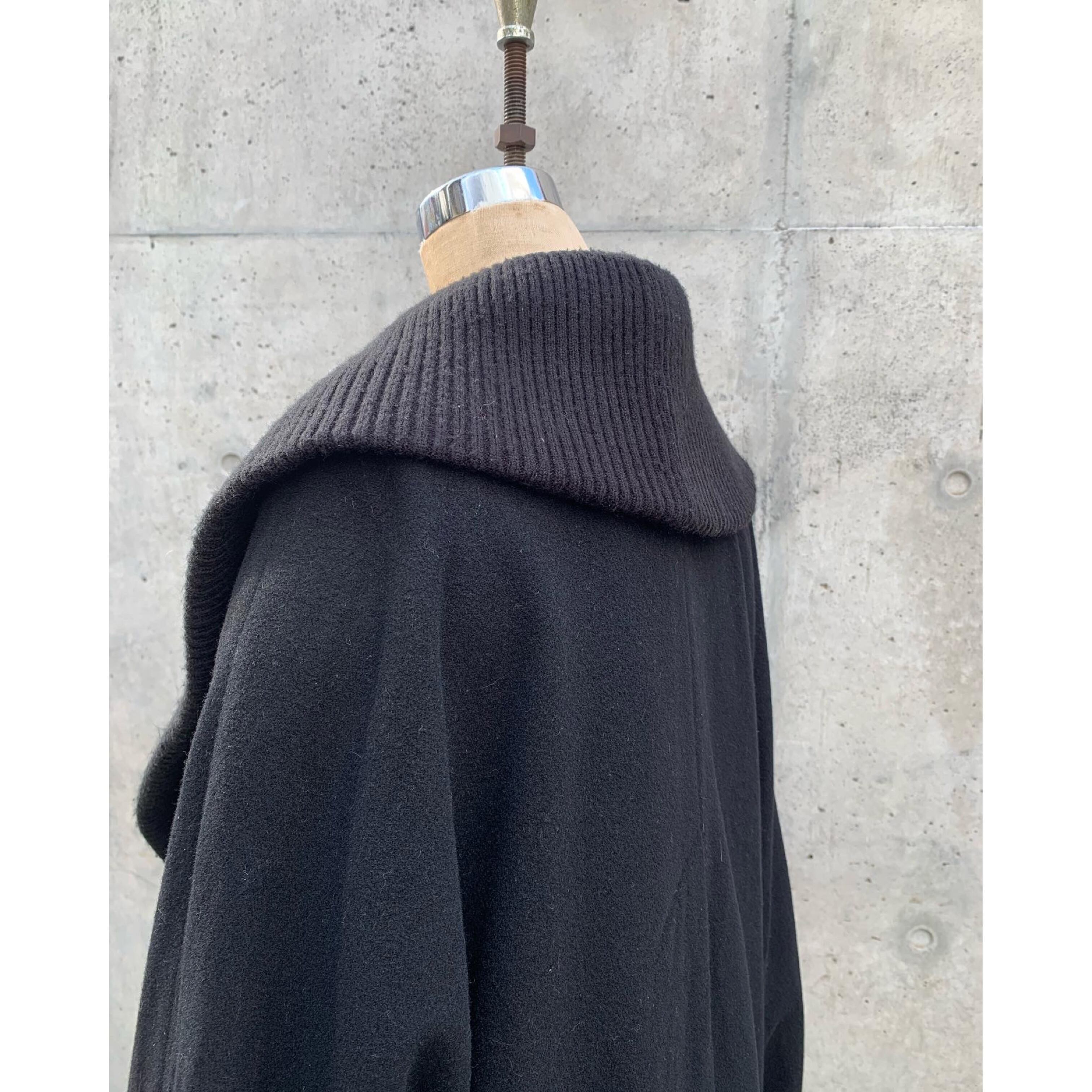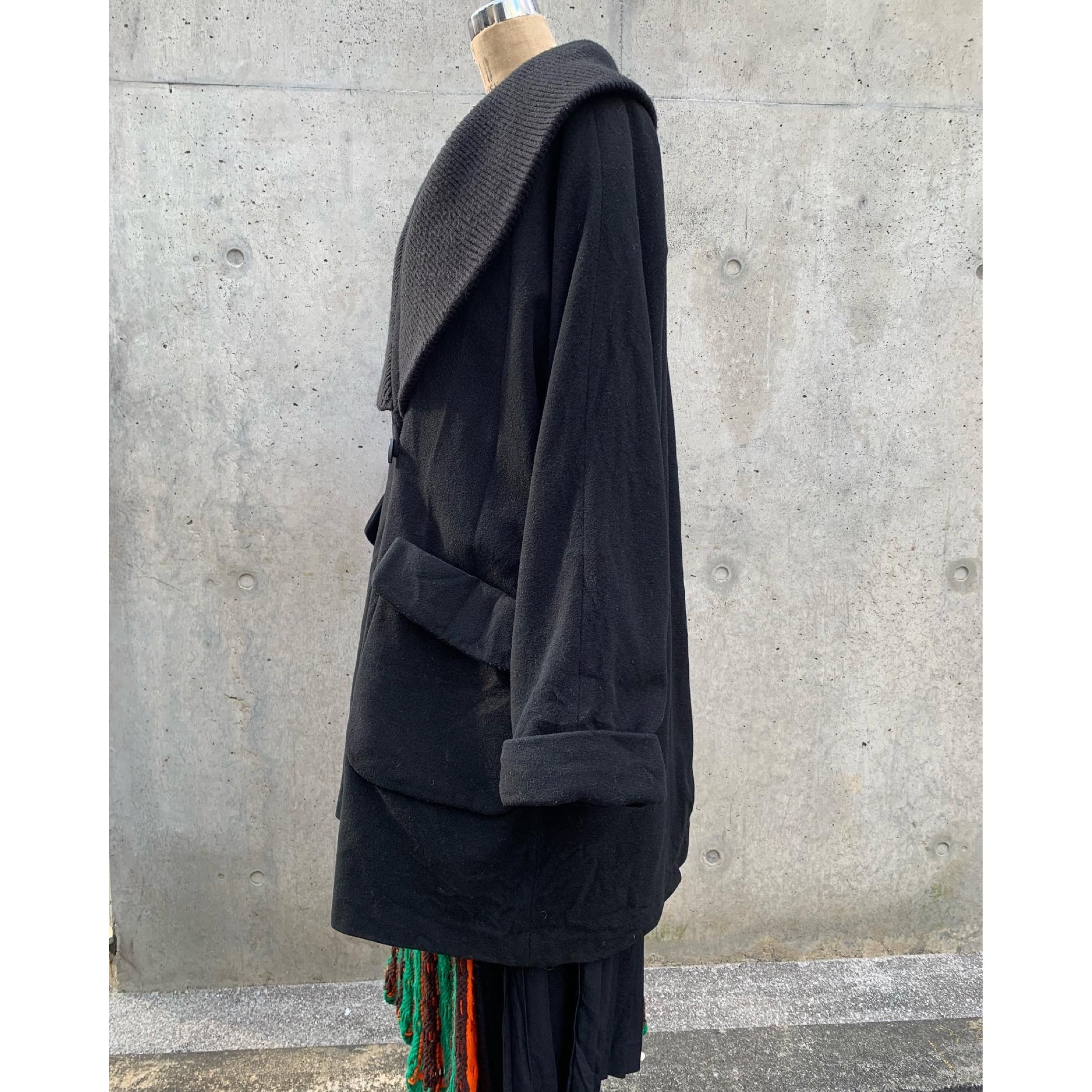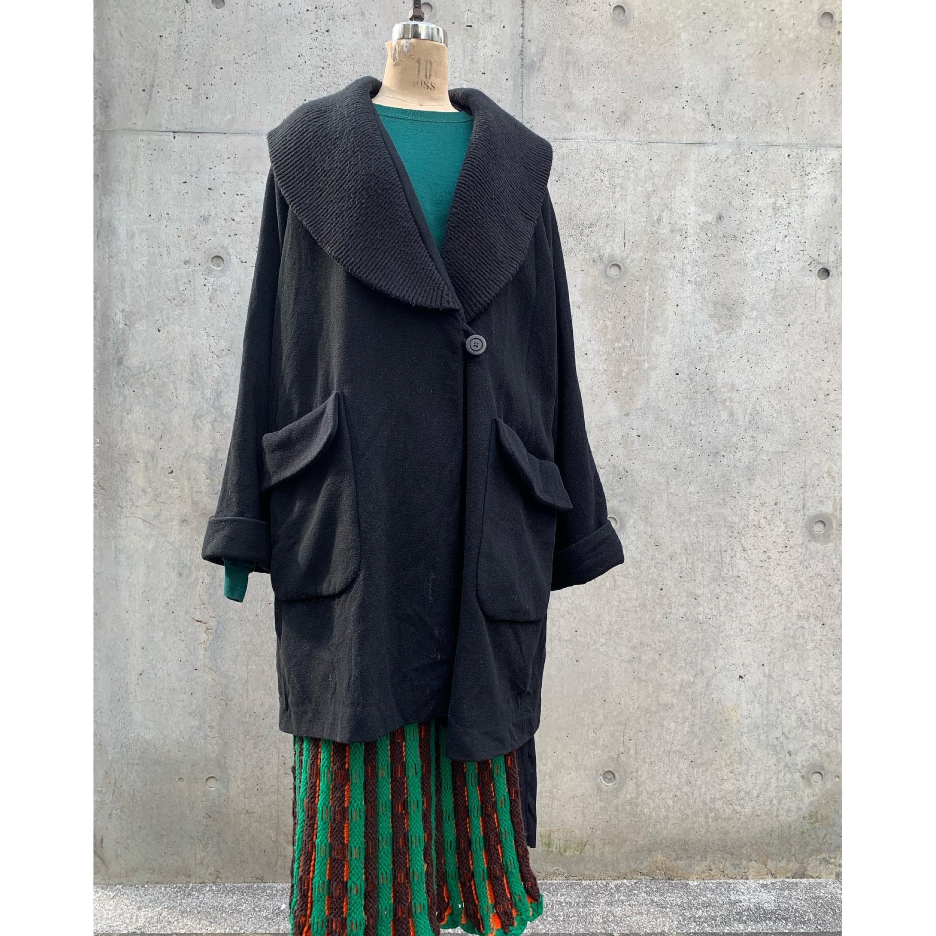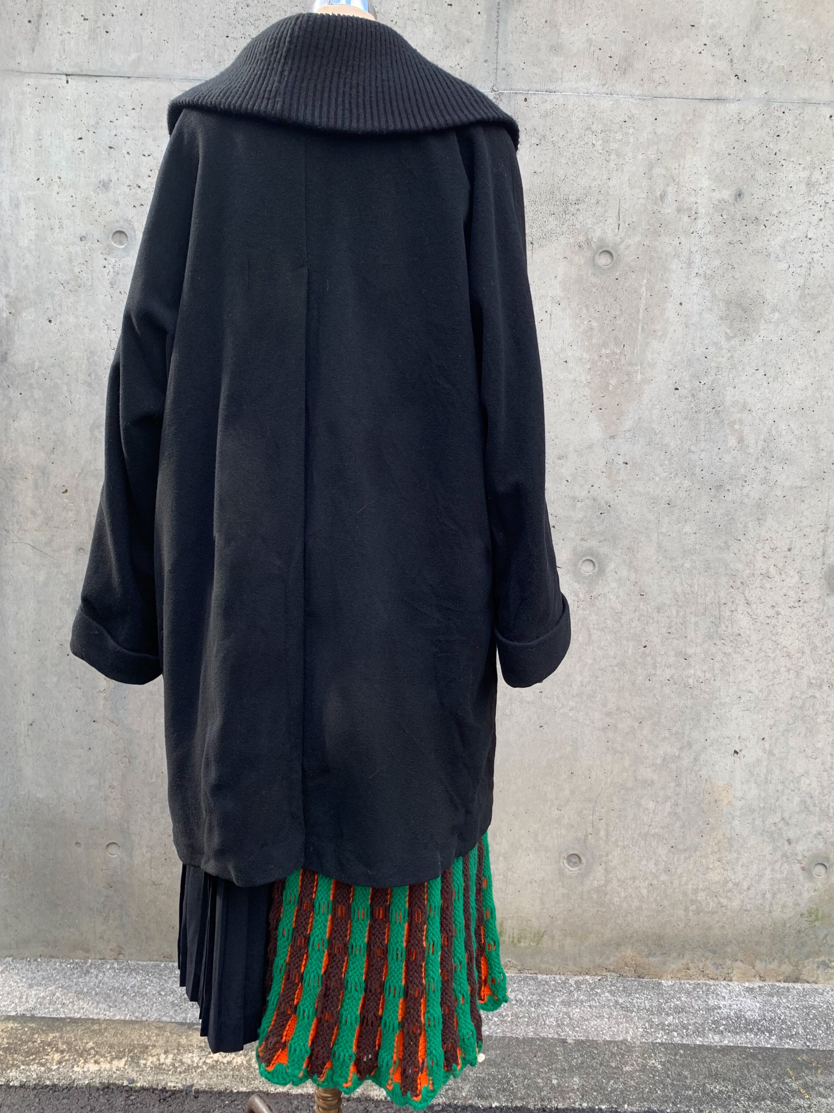 リブニットのショールカラーと、大きなポケットが特徴です。