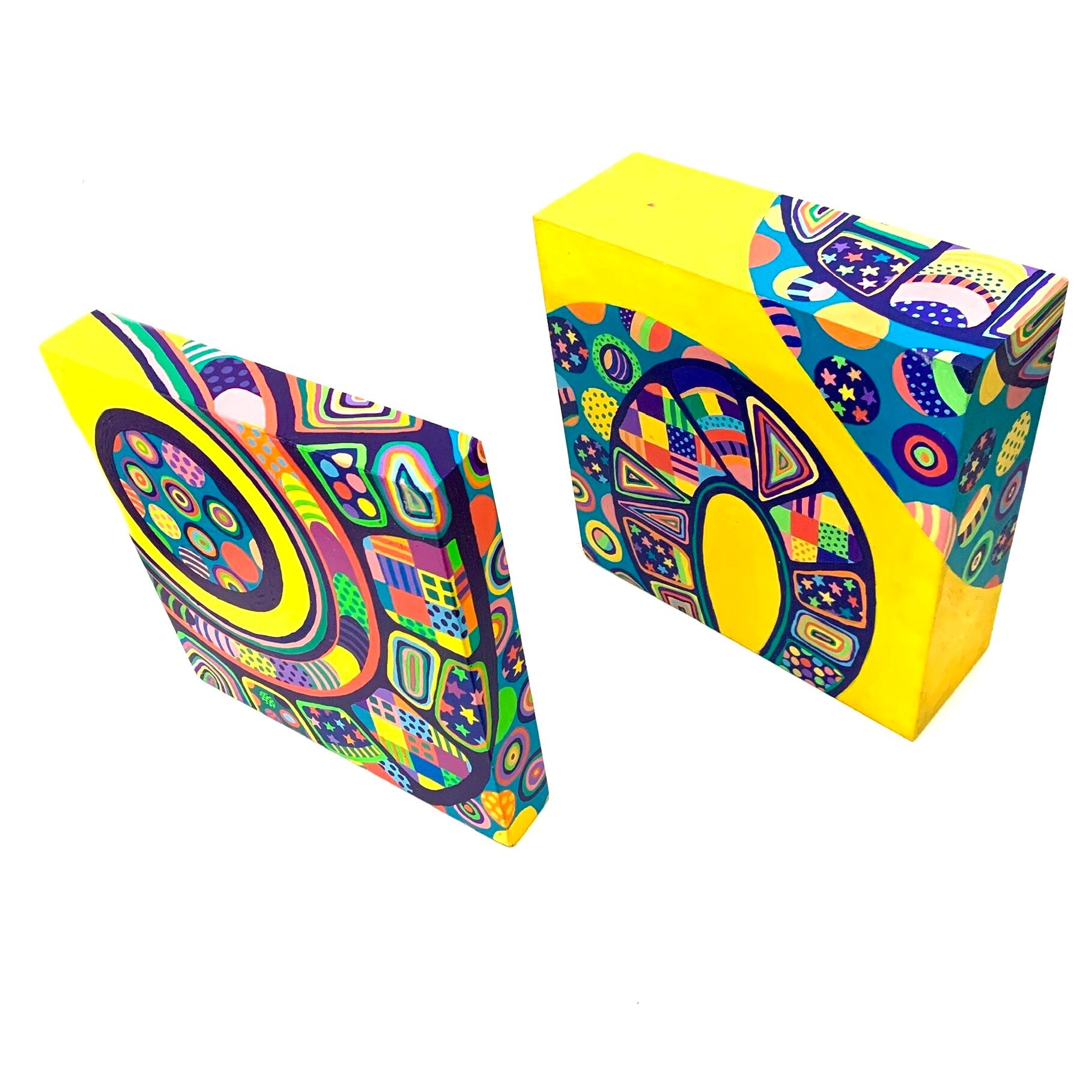 大、小二つの木製パネルに色彩豊かな絵が描かれています!