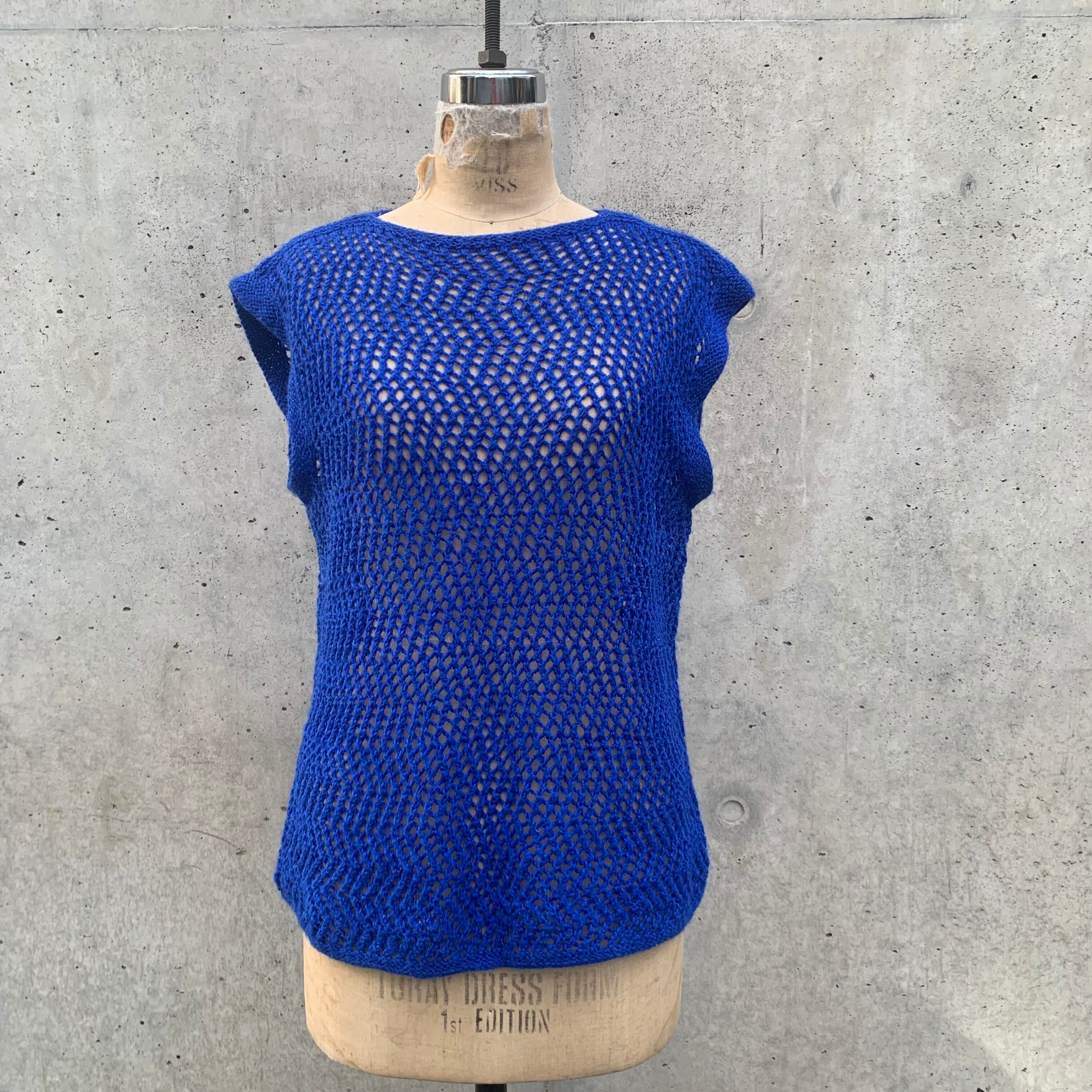 blue crochet knit vest "French sleeve"