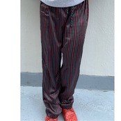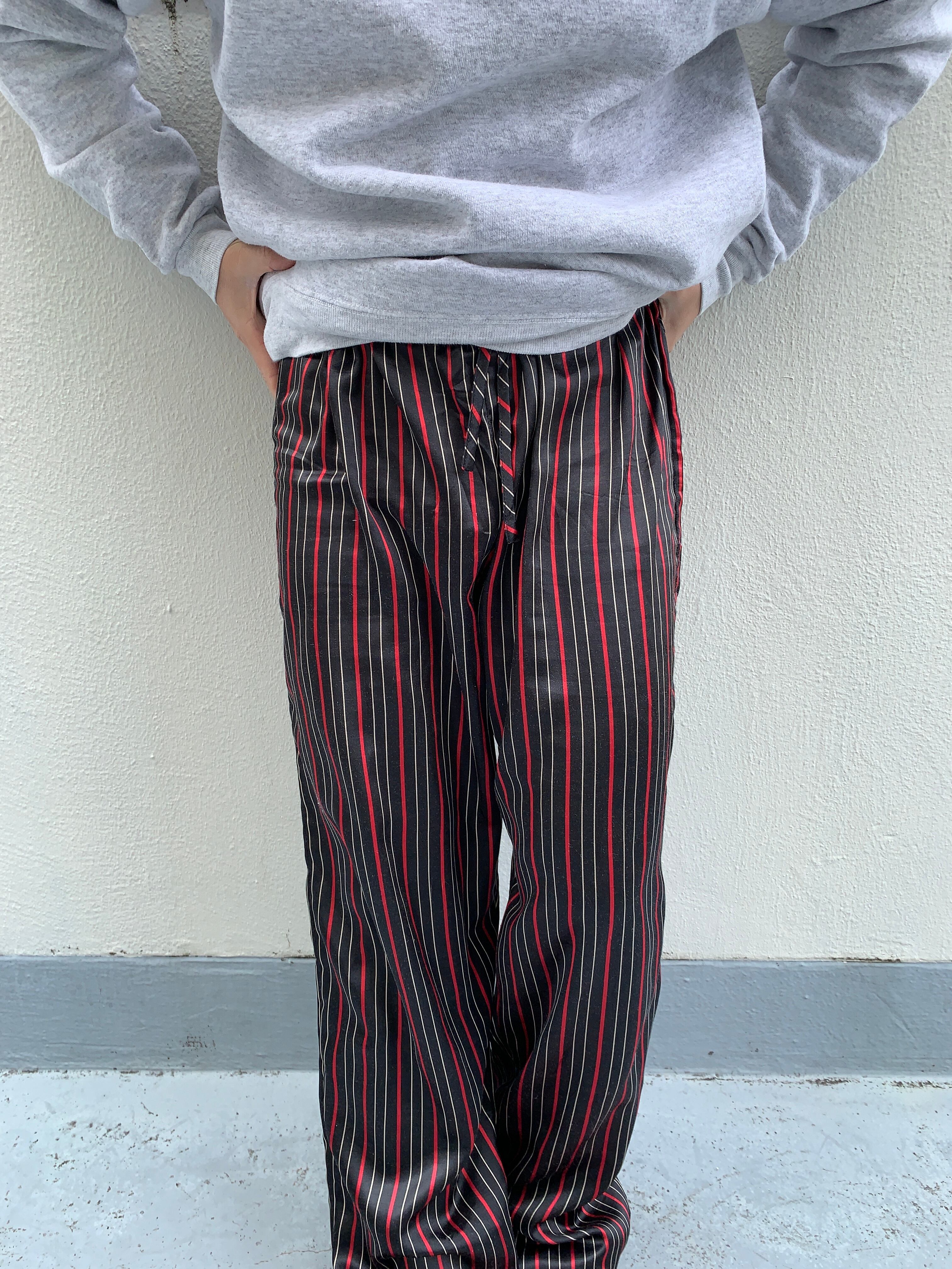 ビビッドな赤が引き立つサテン地のストライプ☻