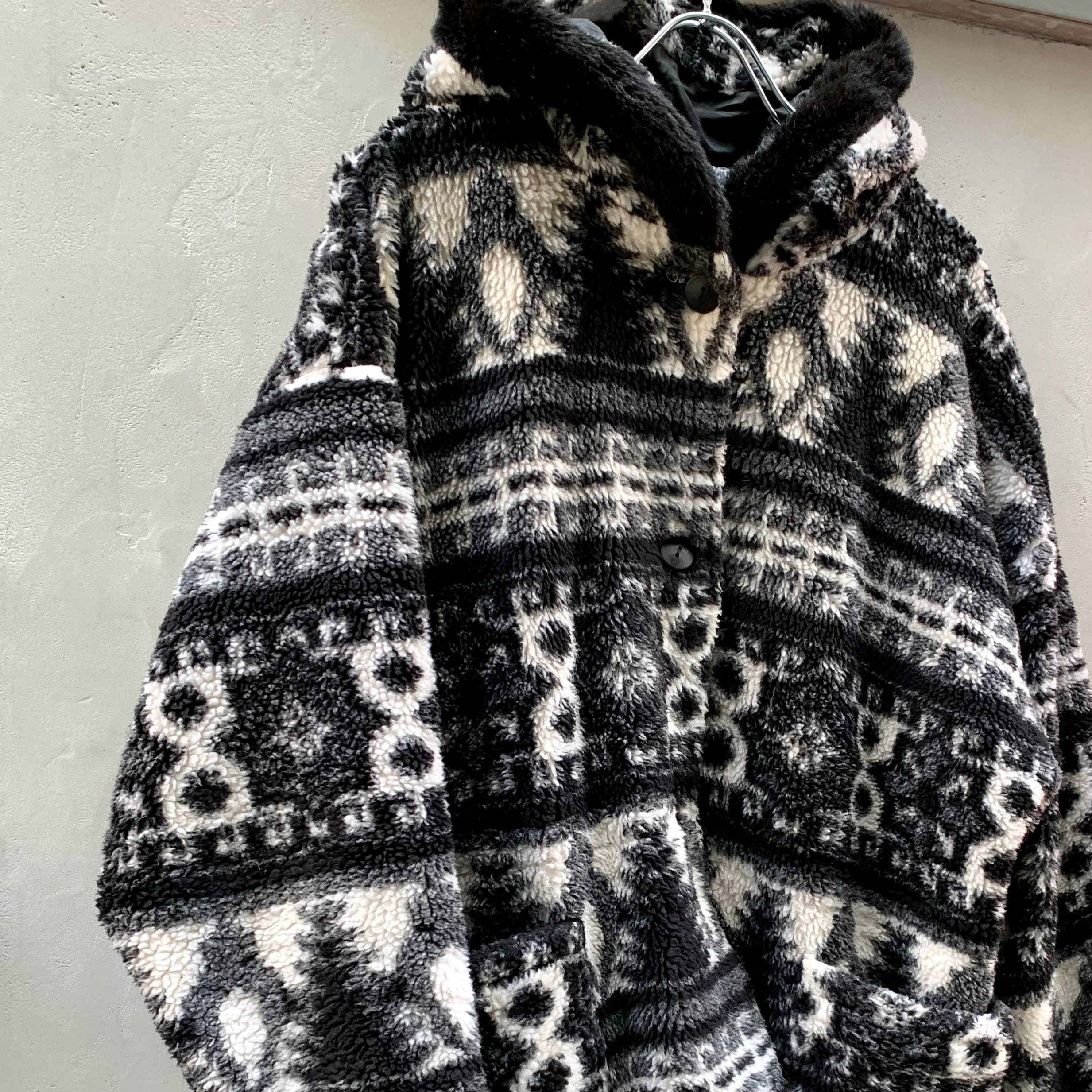 毛足の長いボアフリースでブラック×ホワイトの氷とツリー柄✳︎
