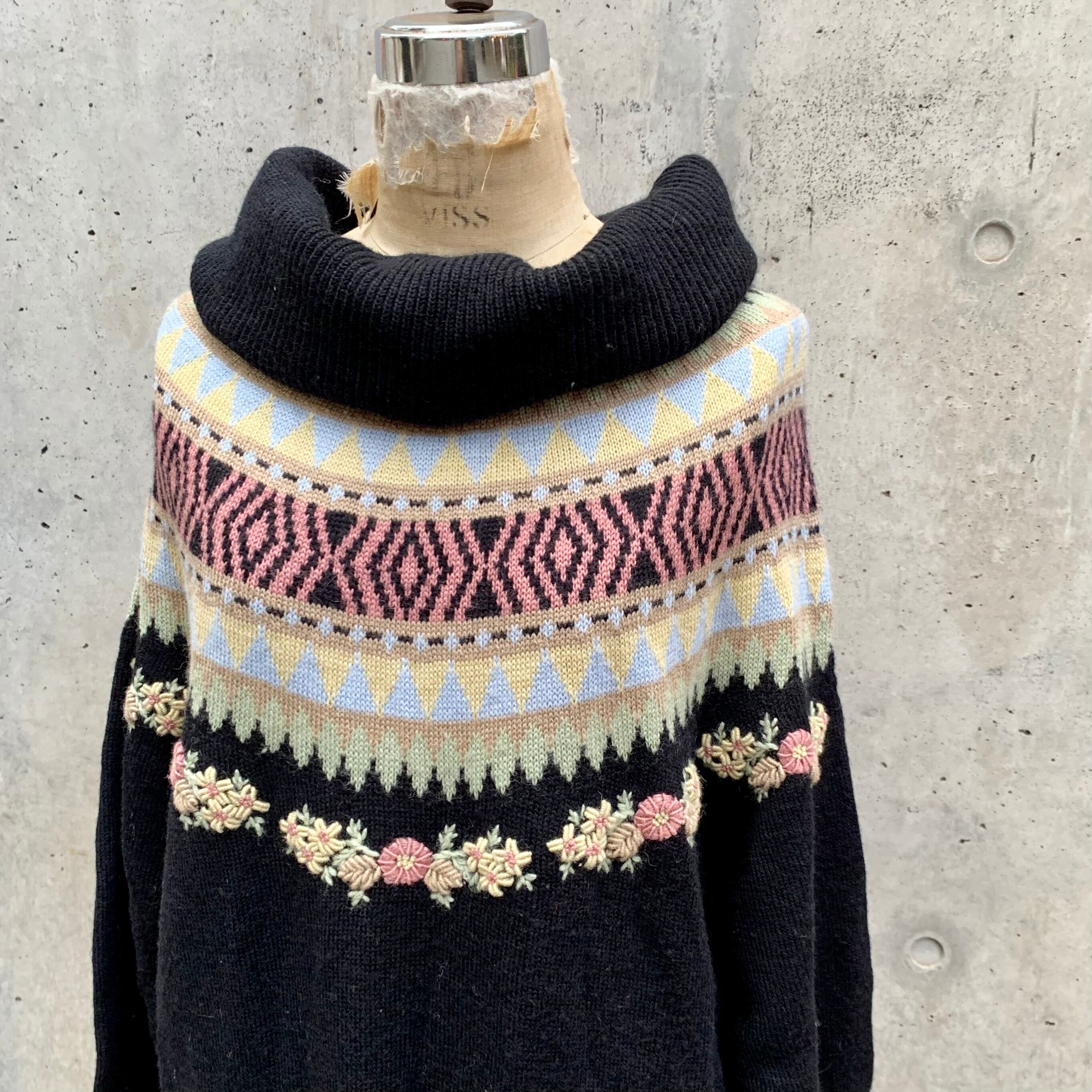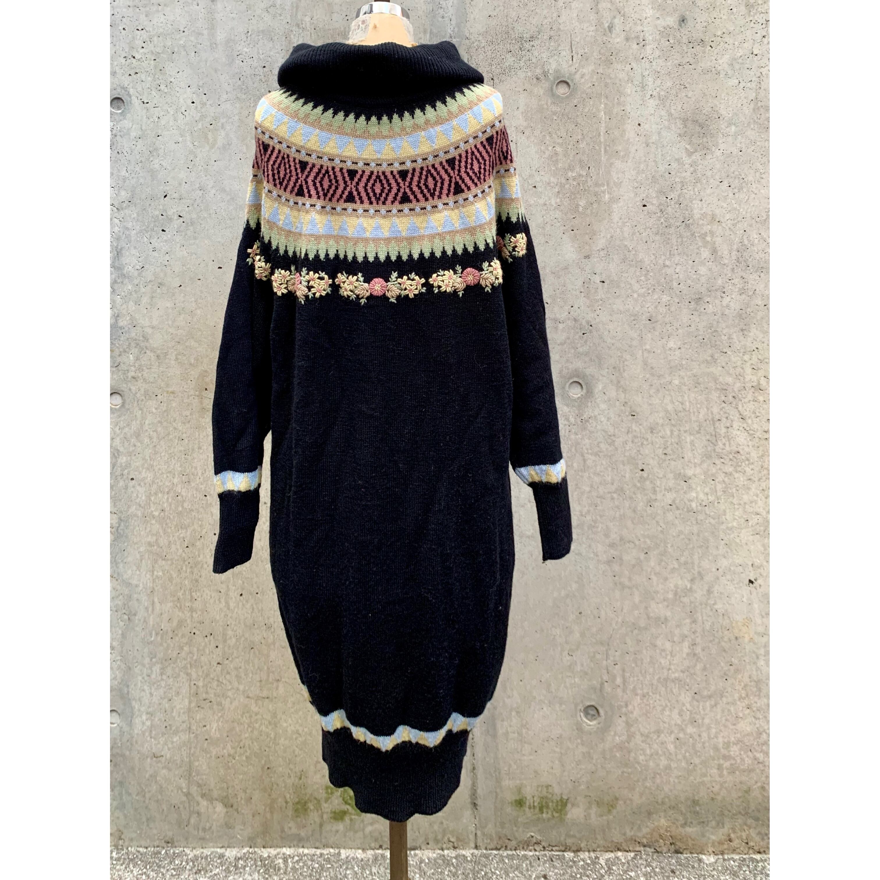 80's rene derhy embroidery knit one-piece