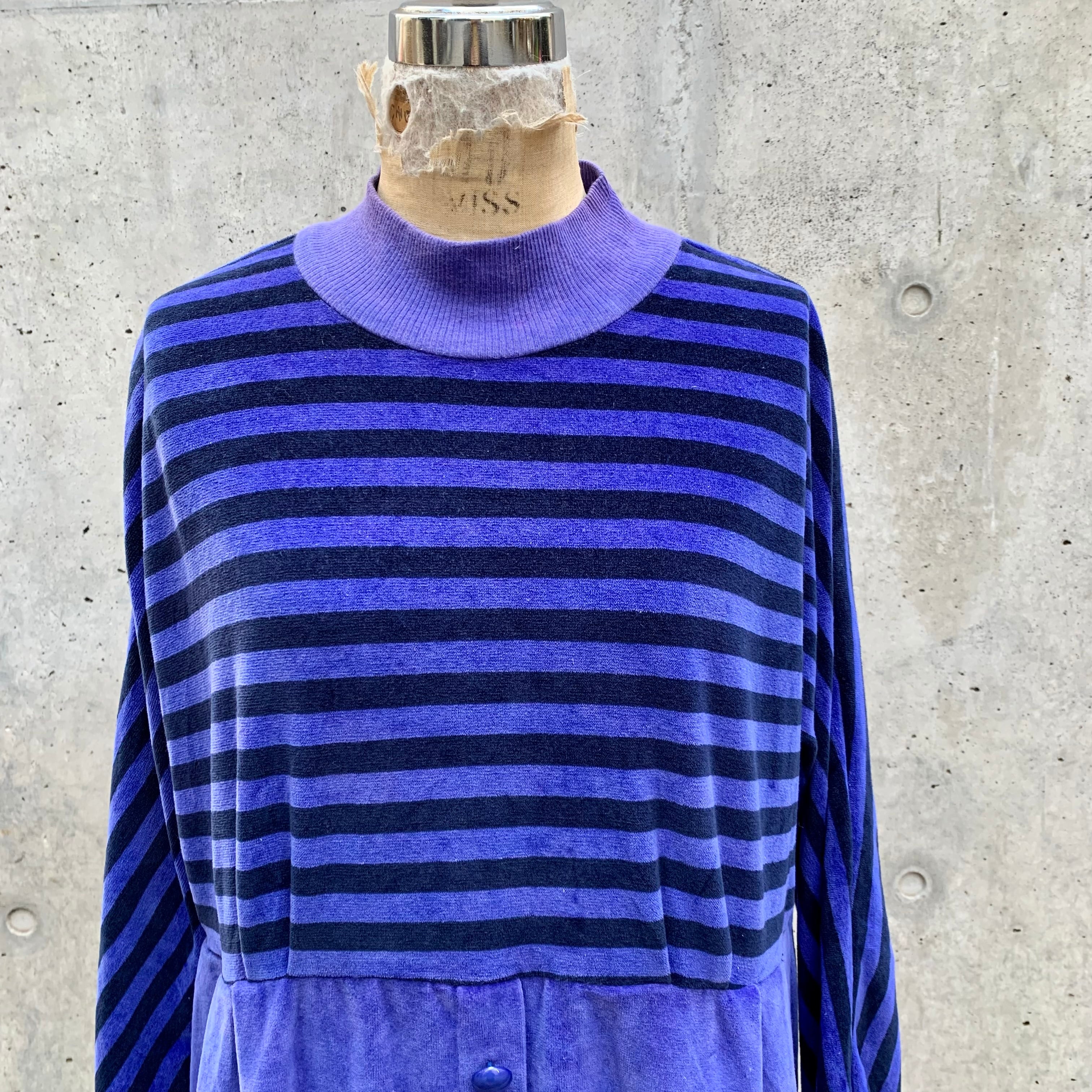 モックネックと、袖までひと続きになったボーダーが特徴のデザイン。
