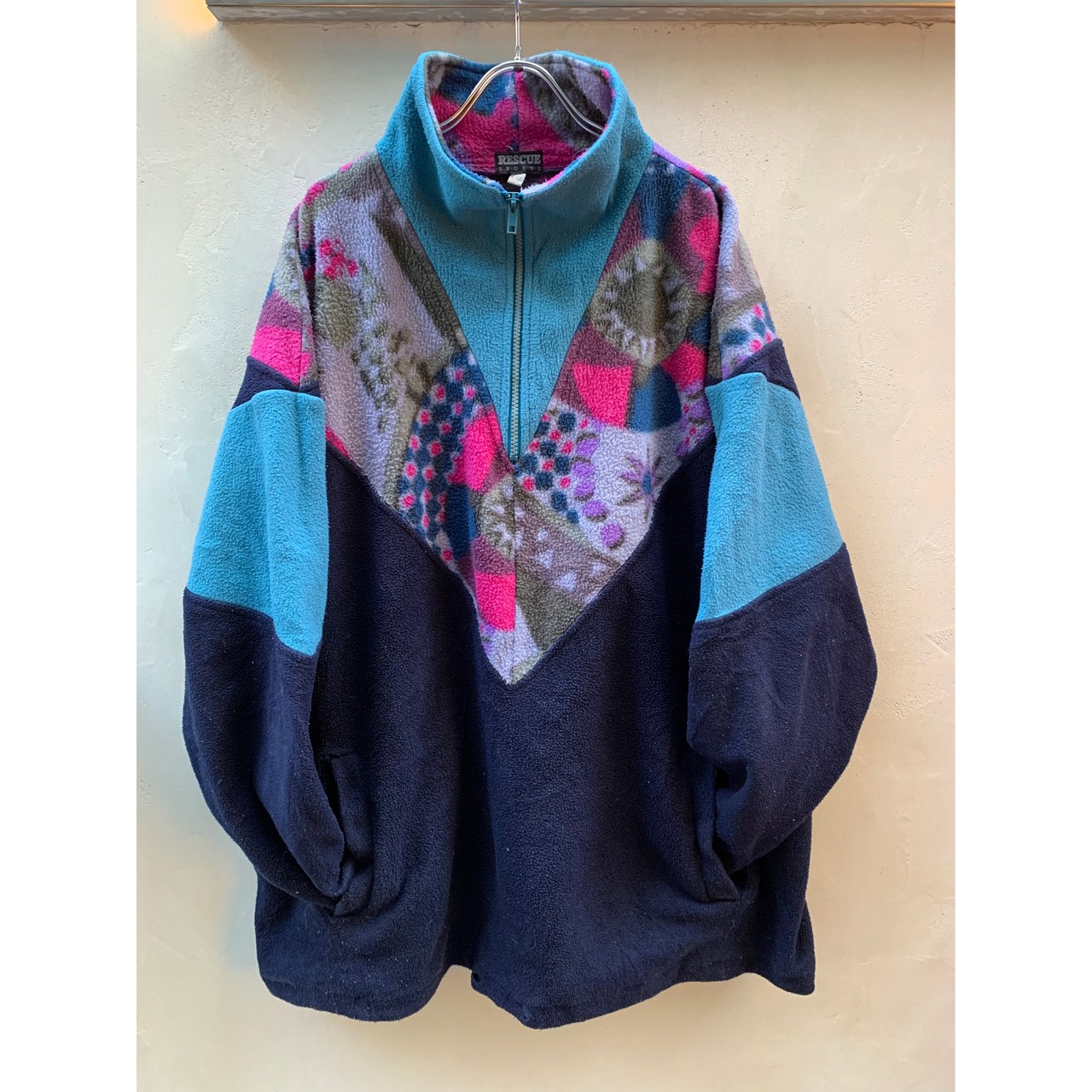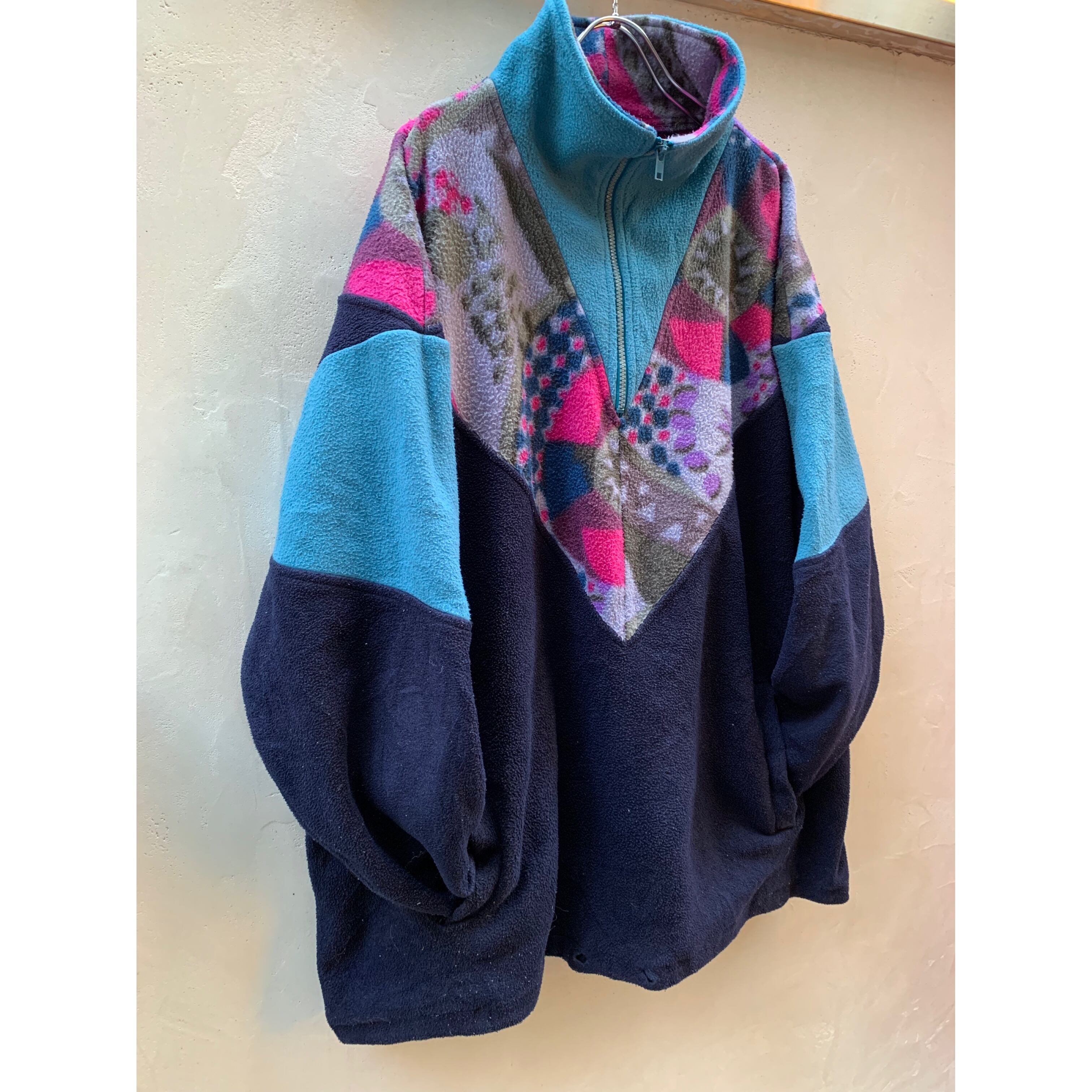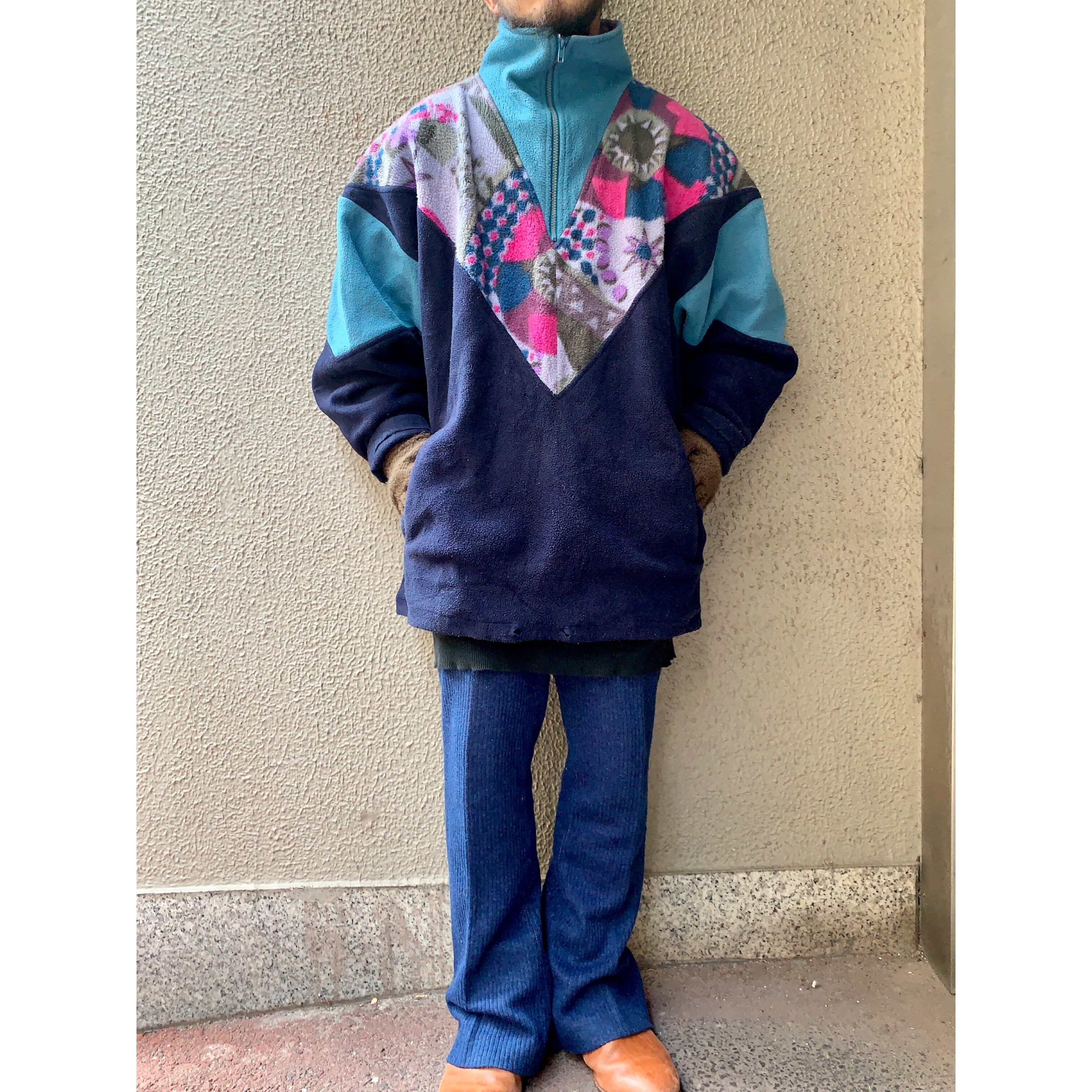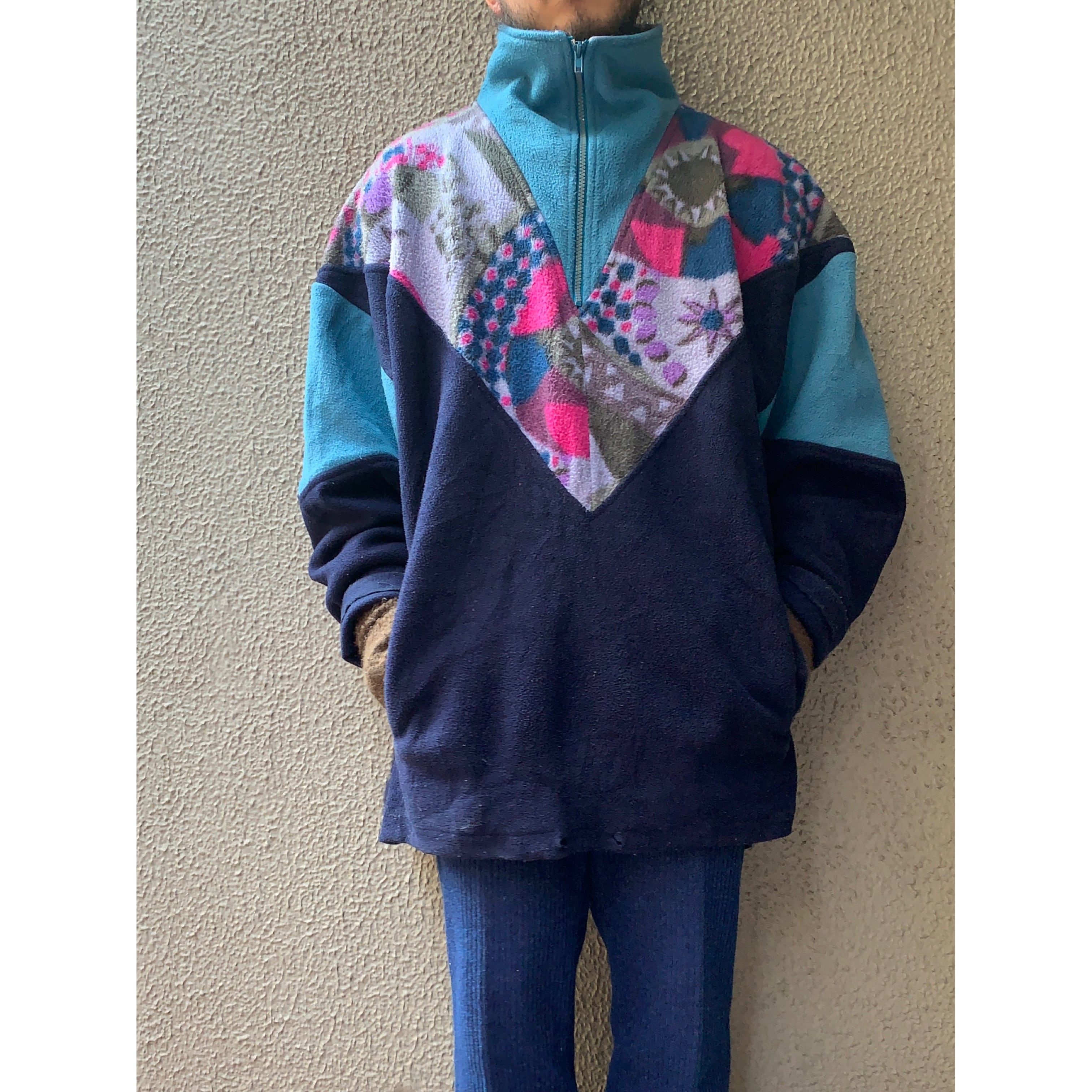 80年代頃の柔らかなフリース素材のハーフジッププルオーバー。