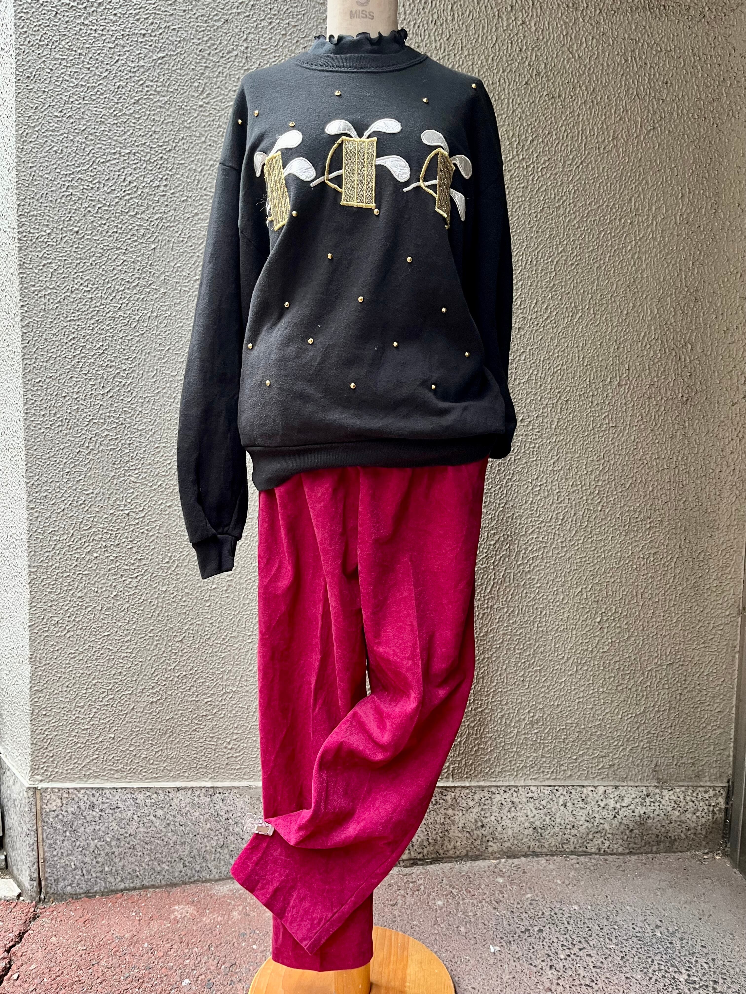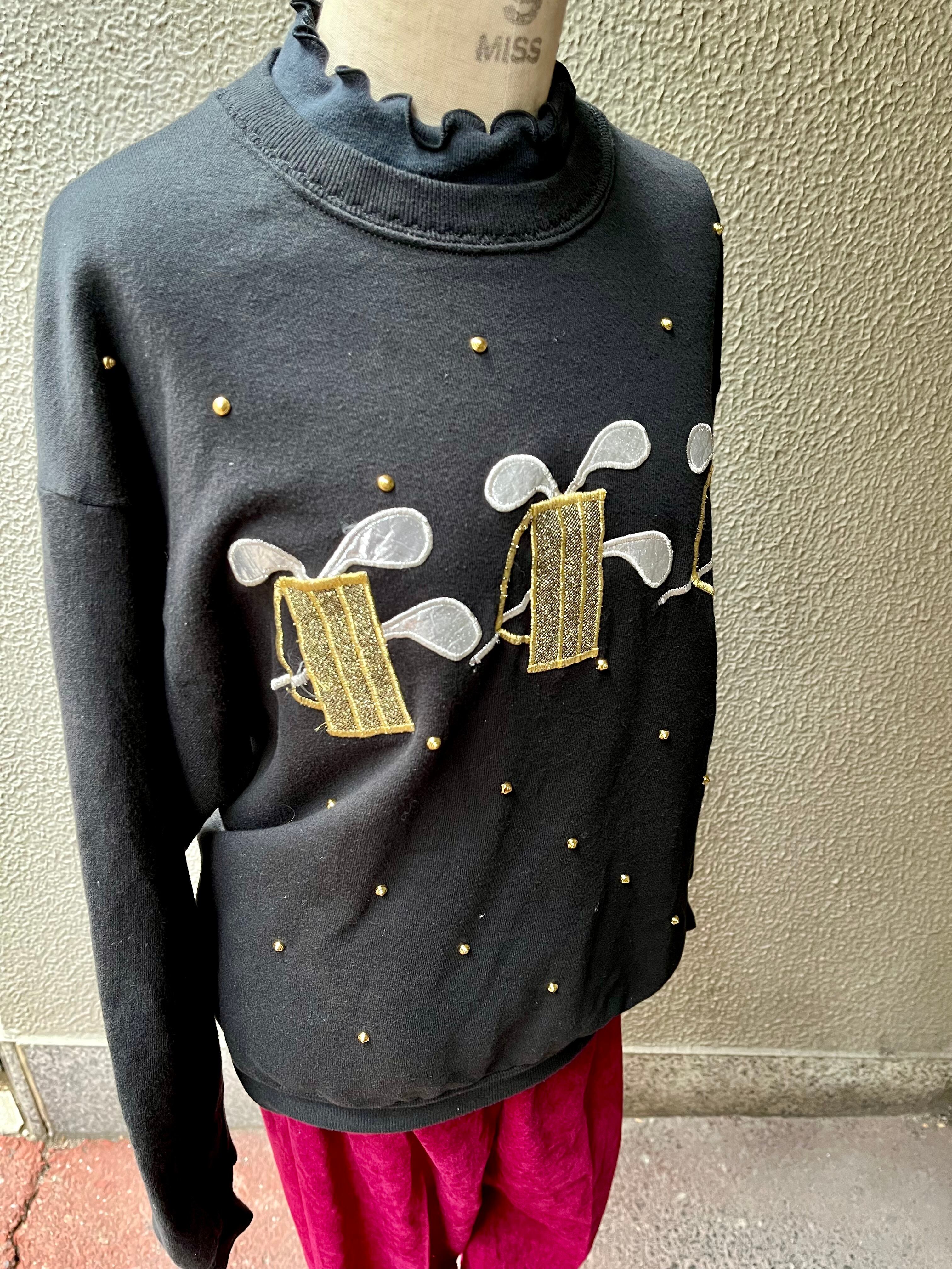 90's high-neck stads sweatshirt "golf club embroidery"