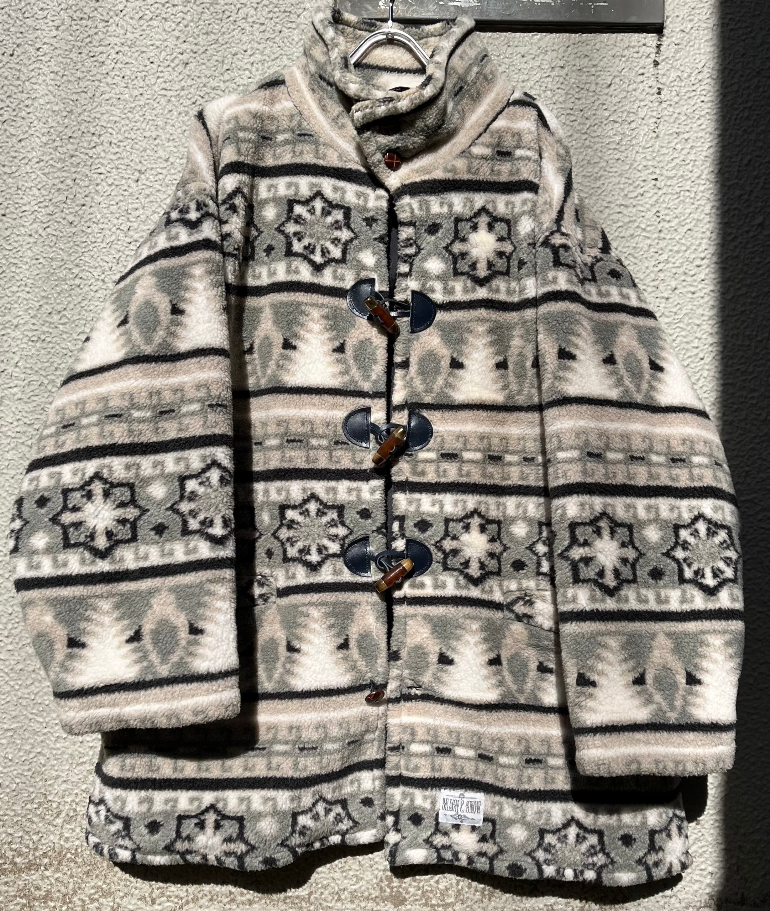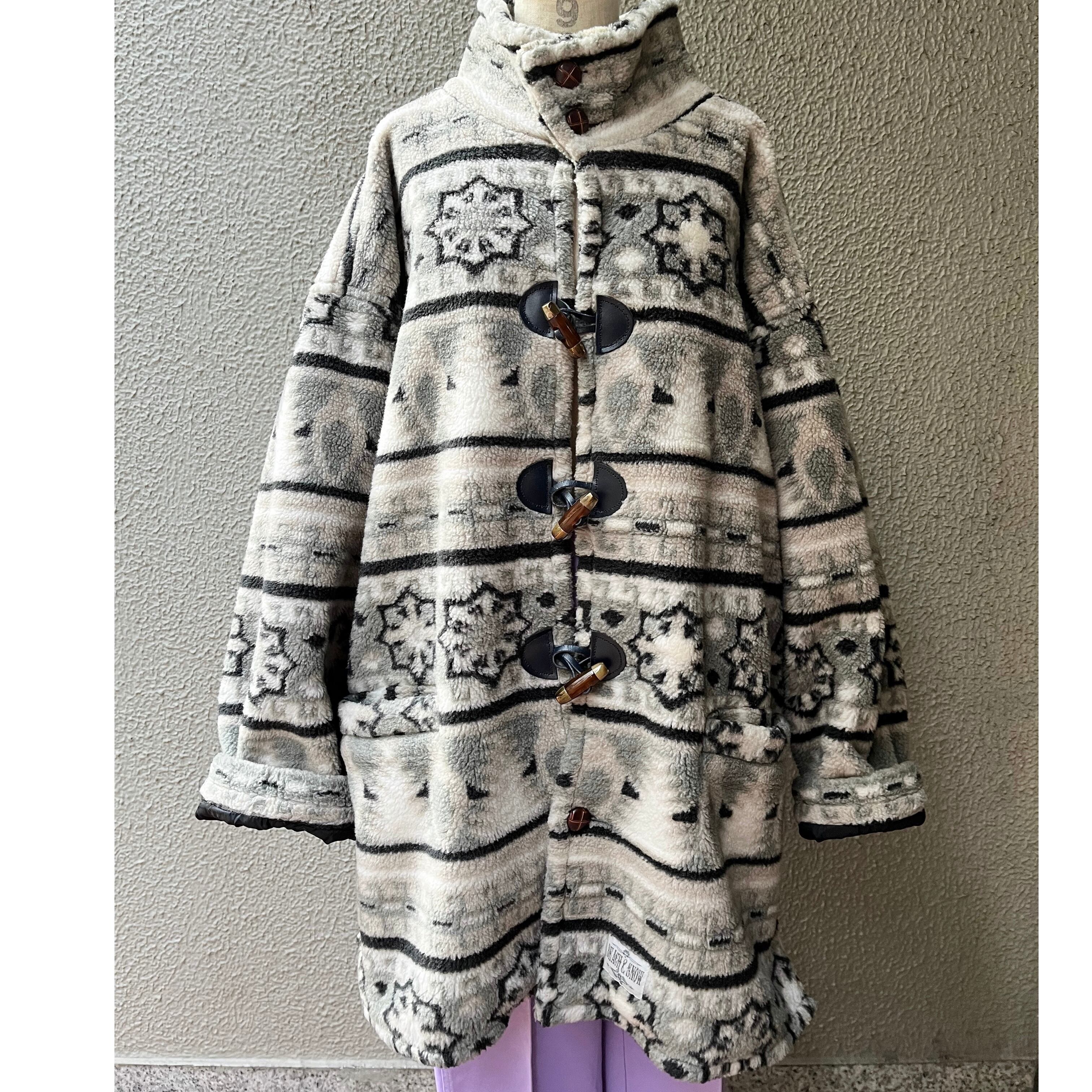 雪柄フリースダッフルコート