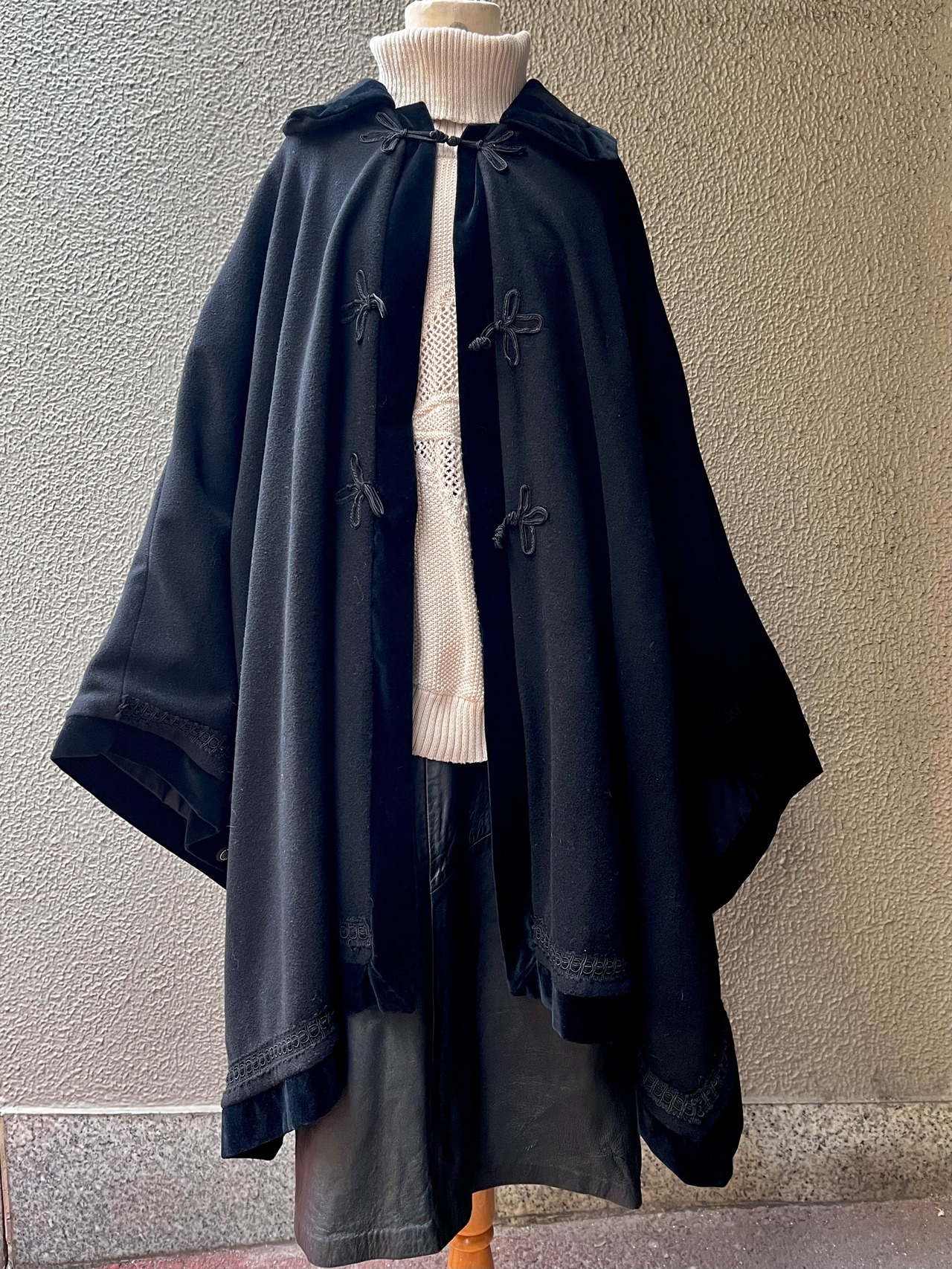 wool melton china button poncho