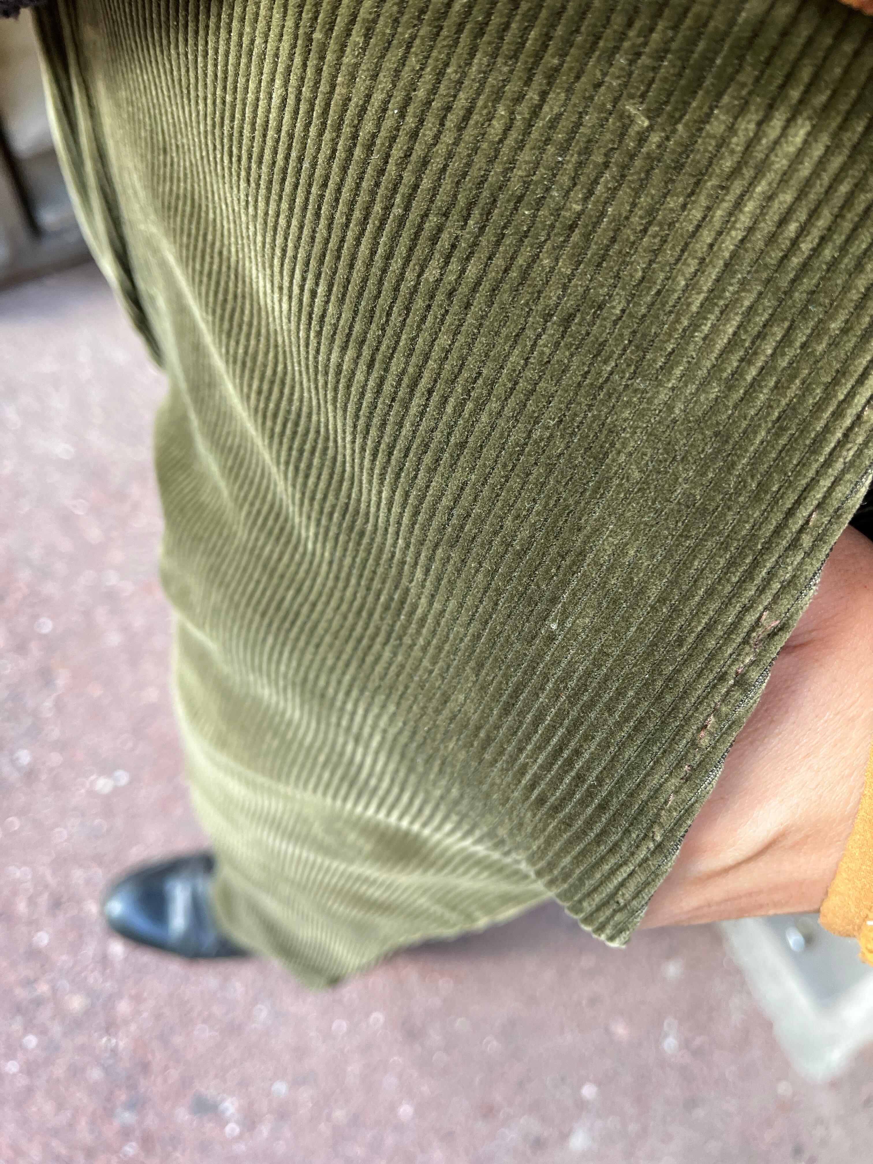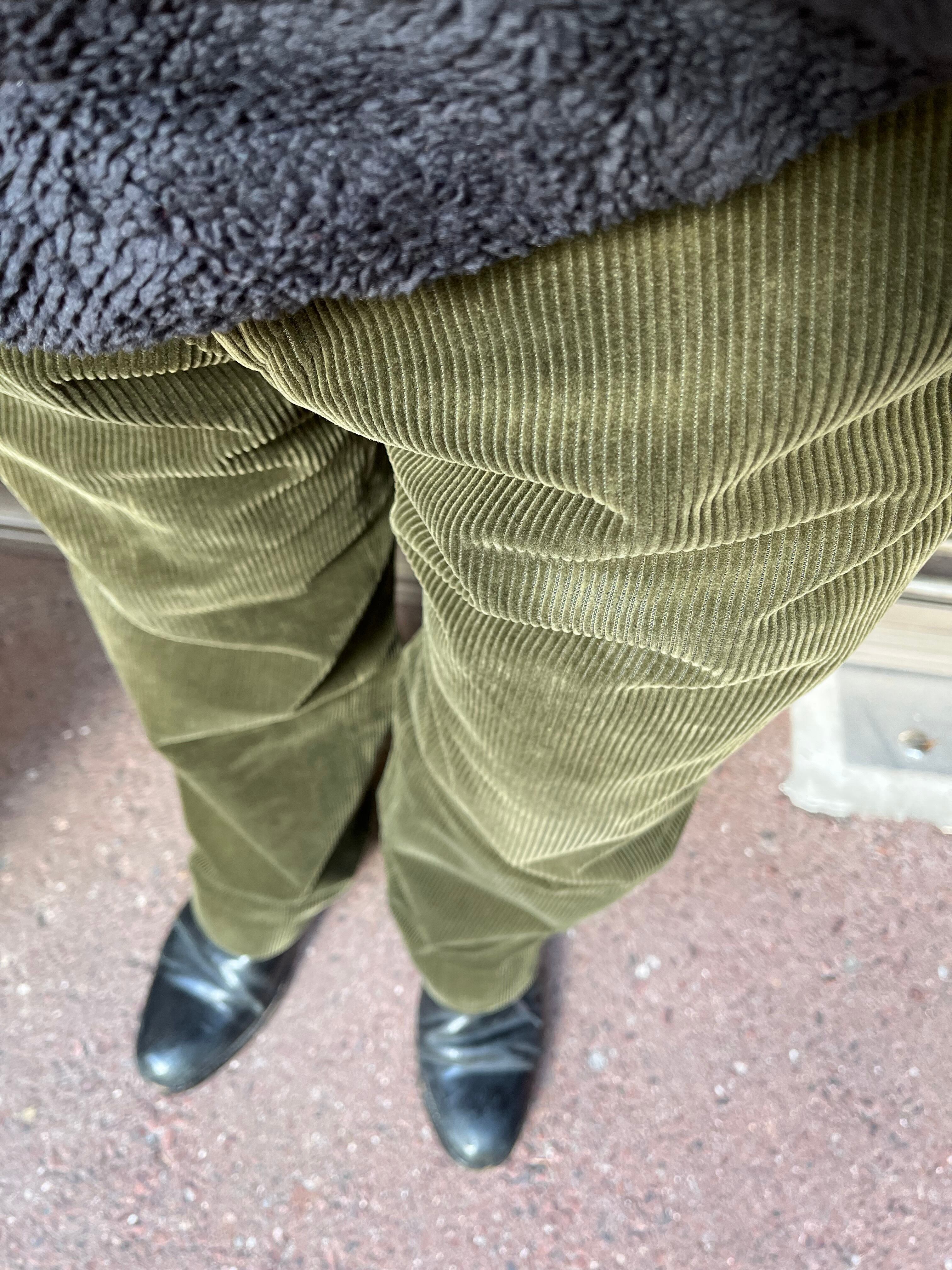 ワイドシルエットをお楽しみいただけるカーキの太畝コーデュロイ◎