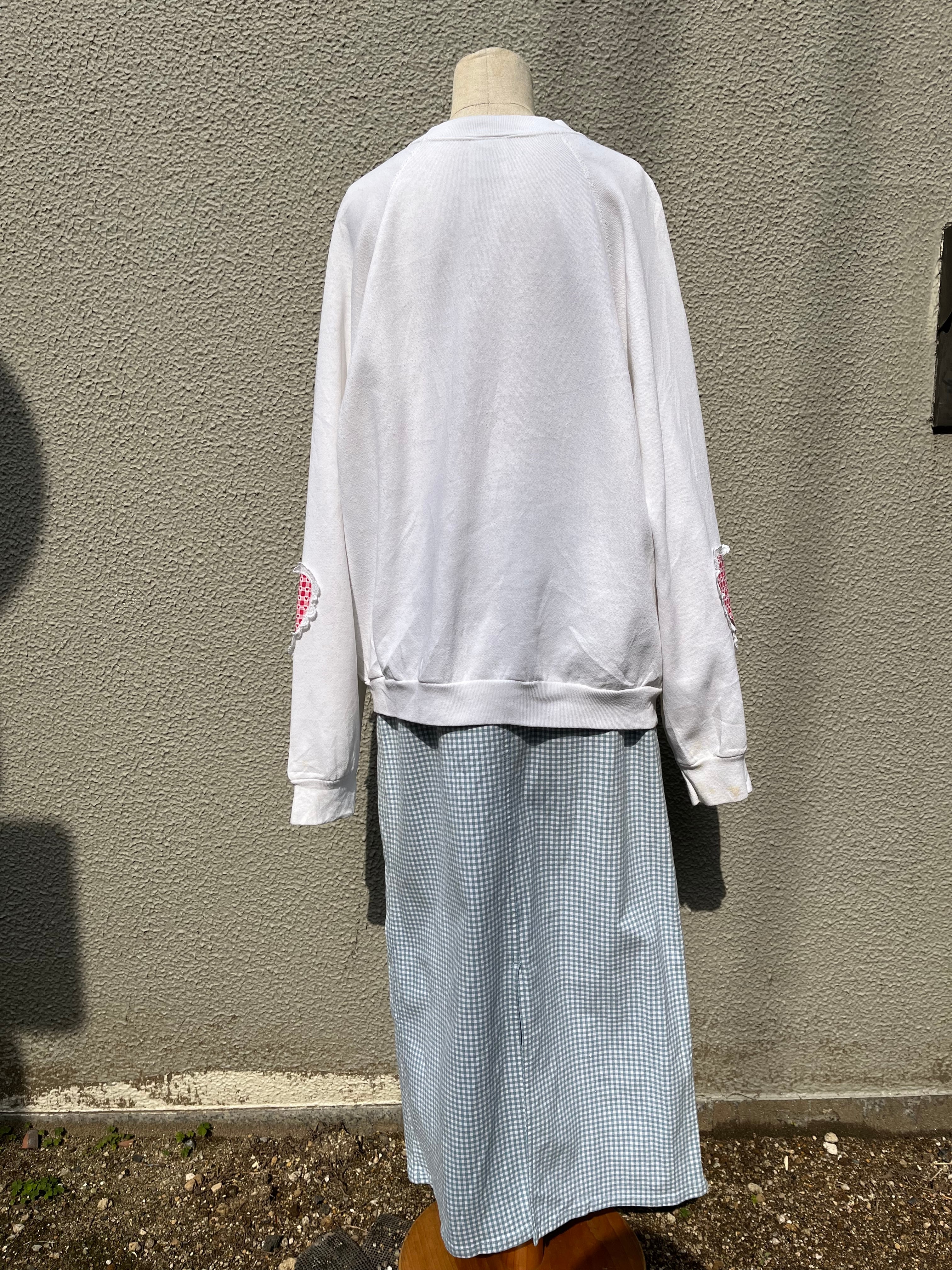 プレーンなホワイトにハートの装飾が可愛いスウェット◎