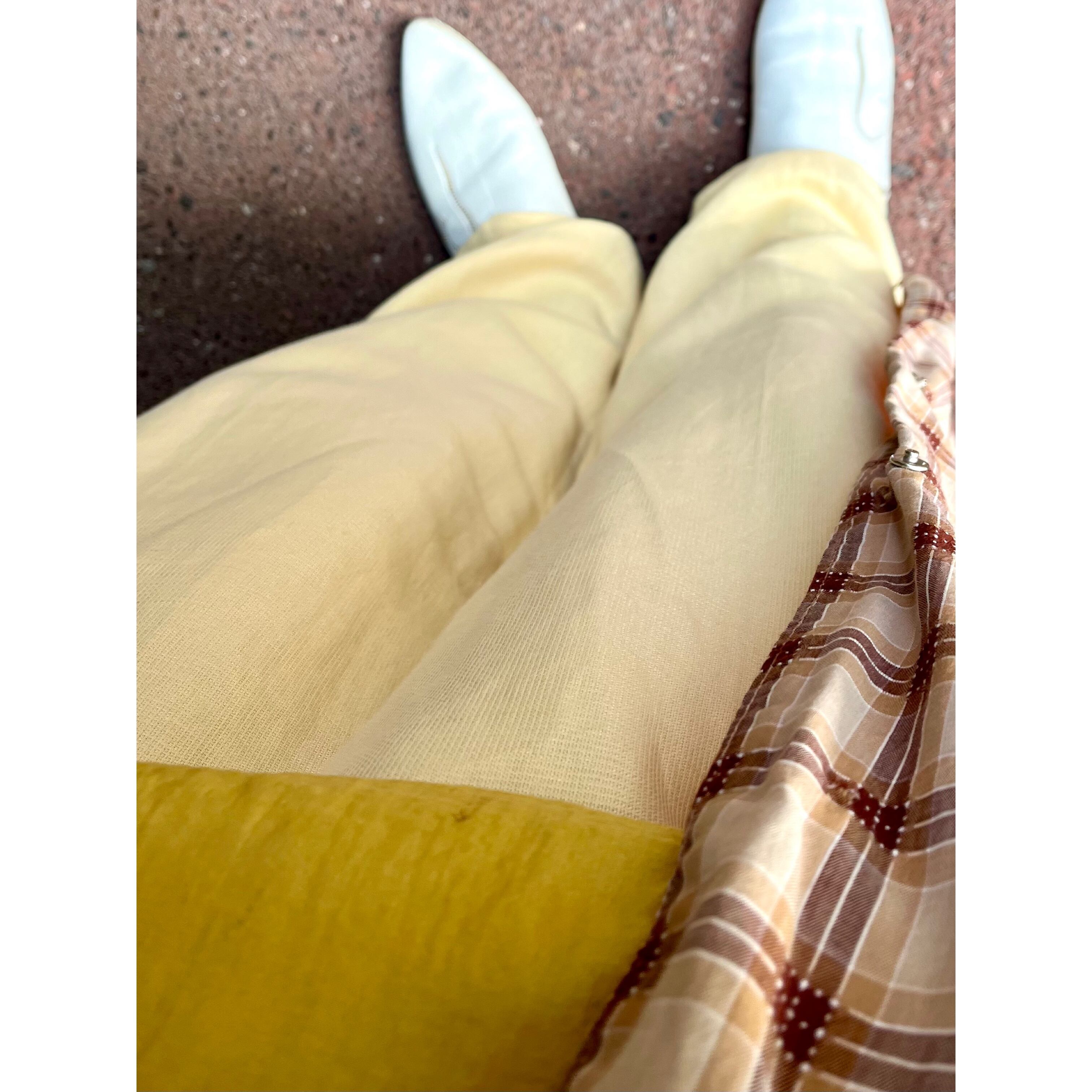 柔らかい印象の淡いイエローのスラックス◎