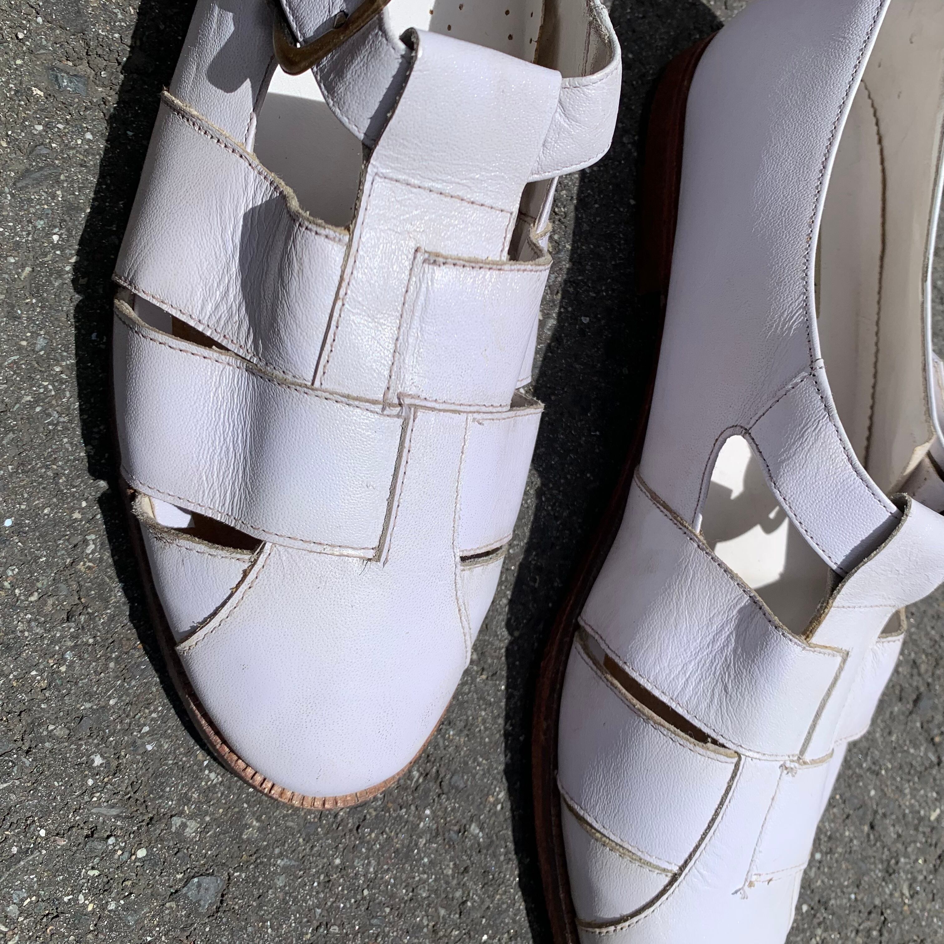 ホワイトカラーのサンダルはどんなコーディネートにもマッチし、夏の装いにぴったり。