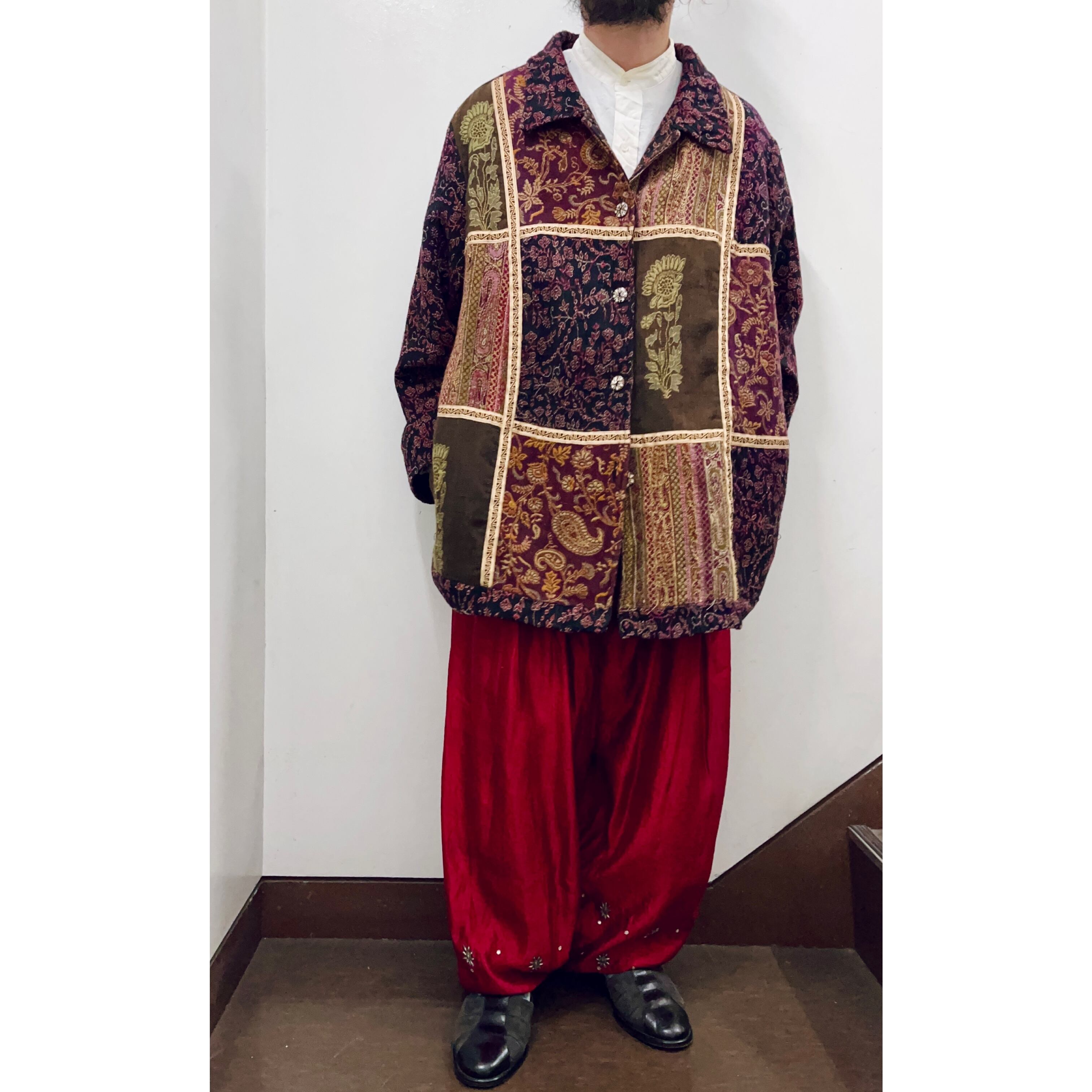 アクリルを主とした生地で構成されたパッチワークジャケット。