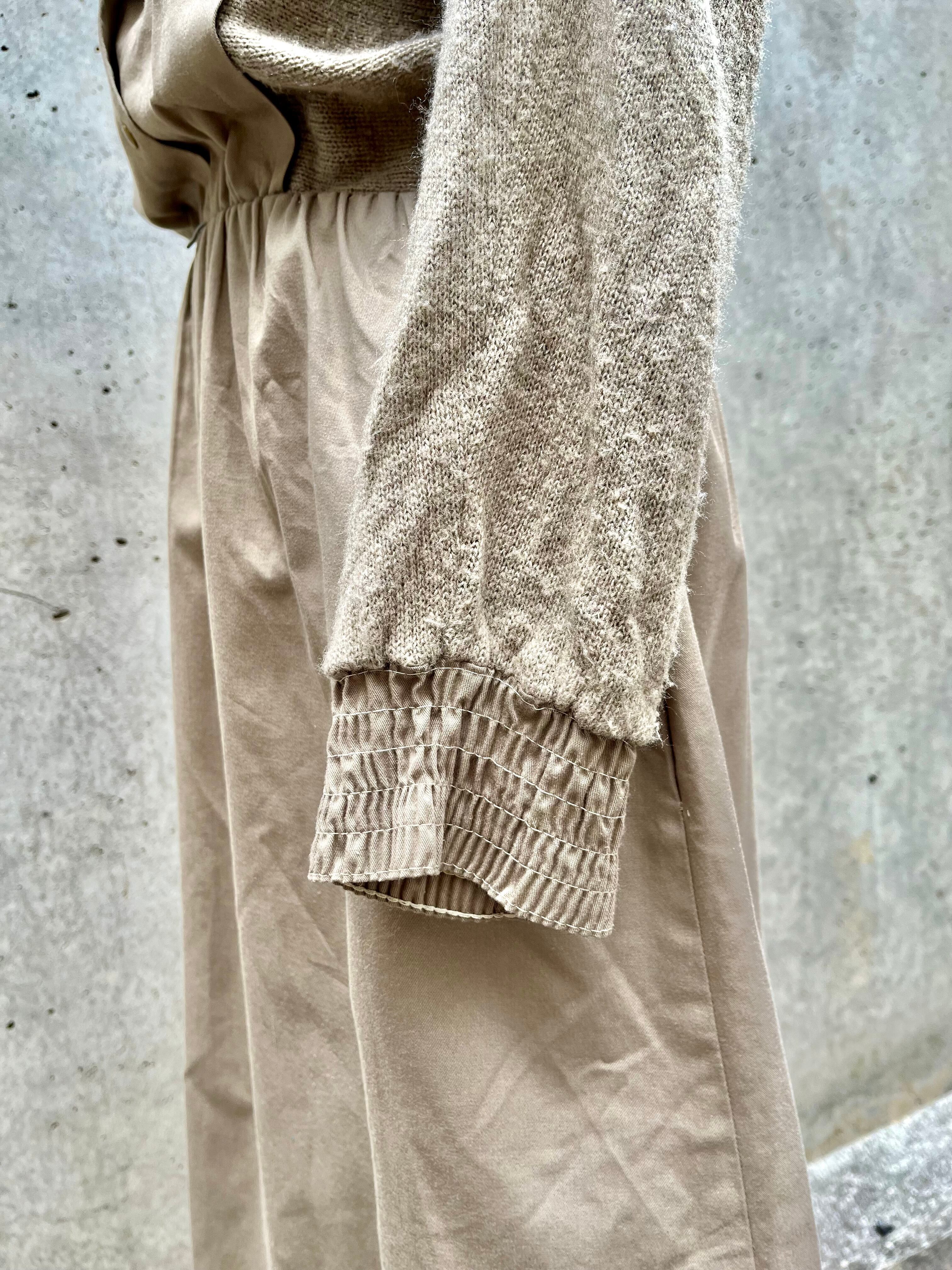 滑らかなツイル生地に、袖のニット切り替えが特徴のワンピース◎